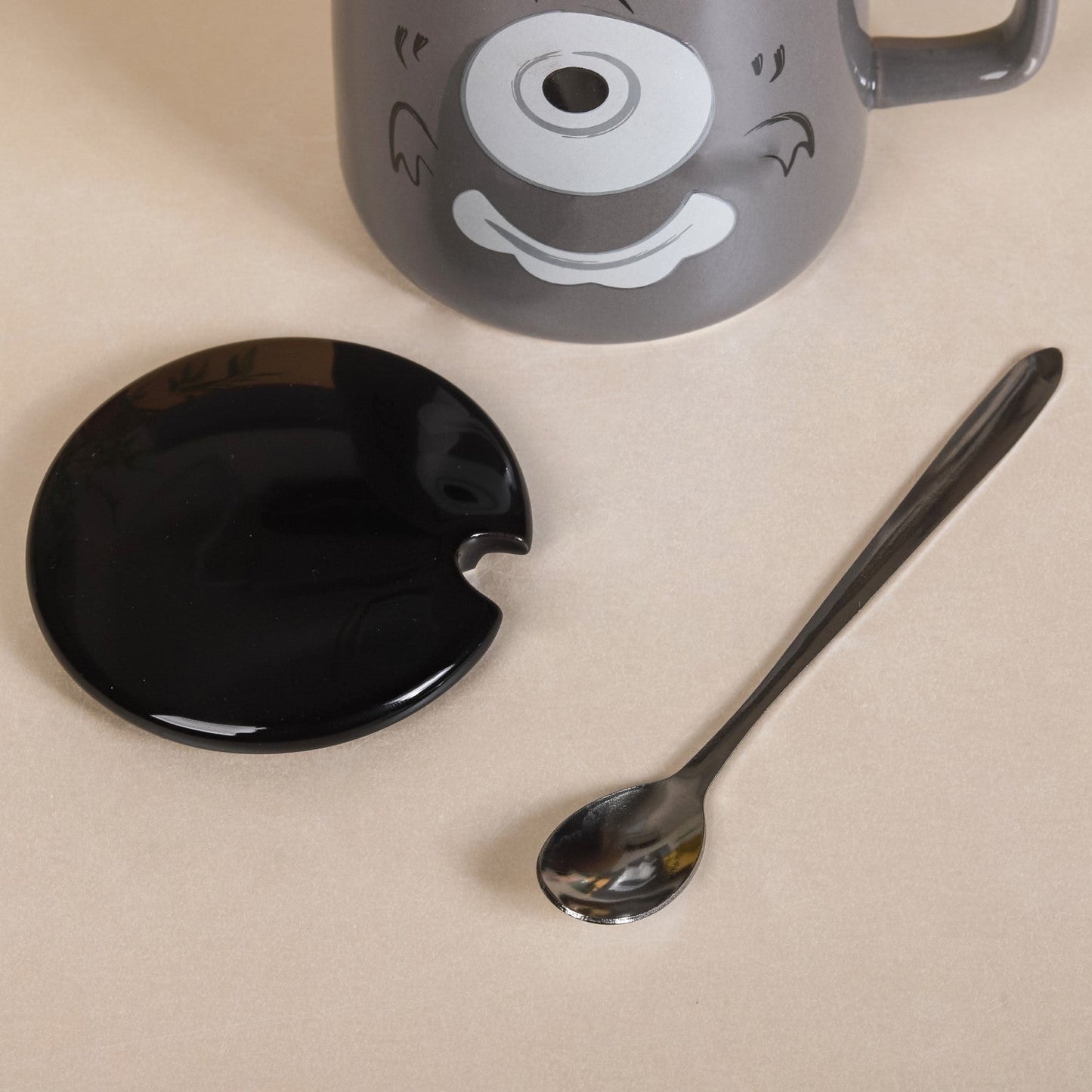 The tall ceramic cup with lid and spoon is a perfect milkshake cup or coffee cup which is available in four different shades of red, blue, grey, and green. The cup handle has cone-like structures for intricate detailing which gives it the aesthetics of a tail. The quirky cup will surely be a show-stealer in a crowded room. Serve hot and cool beverages in style in the cup featuring funky faces. The handle of the mug is somewhat squarish adding a touch of balance in terms of shape to the cylindrical mug. The mug is ideal for baking mug recipes as it can be placed in the microwave oven.
