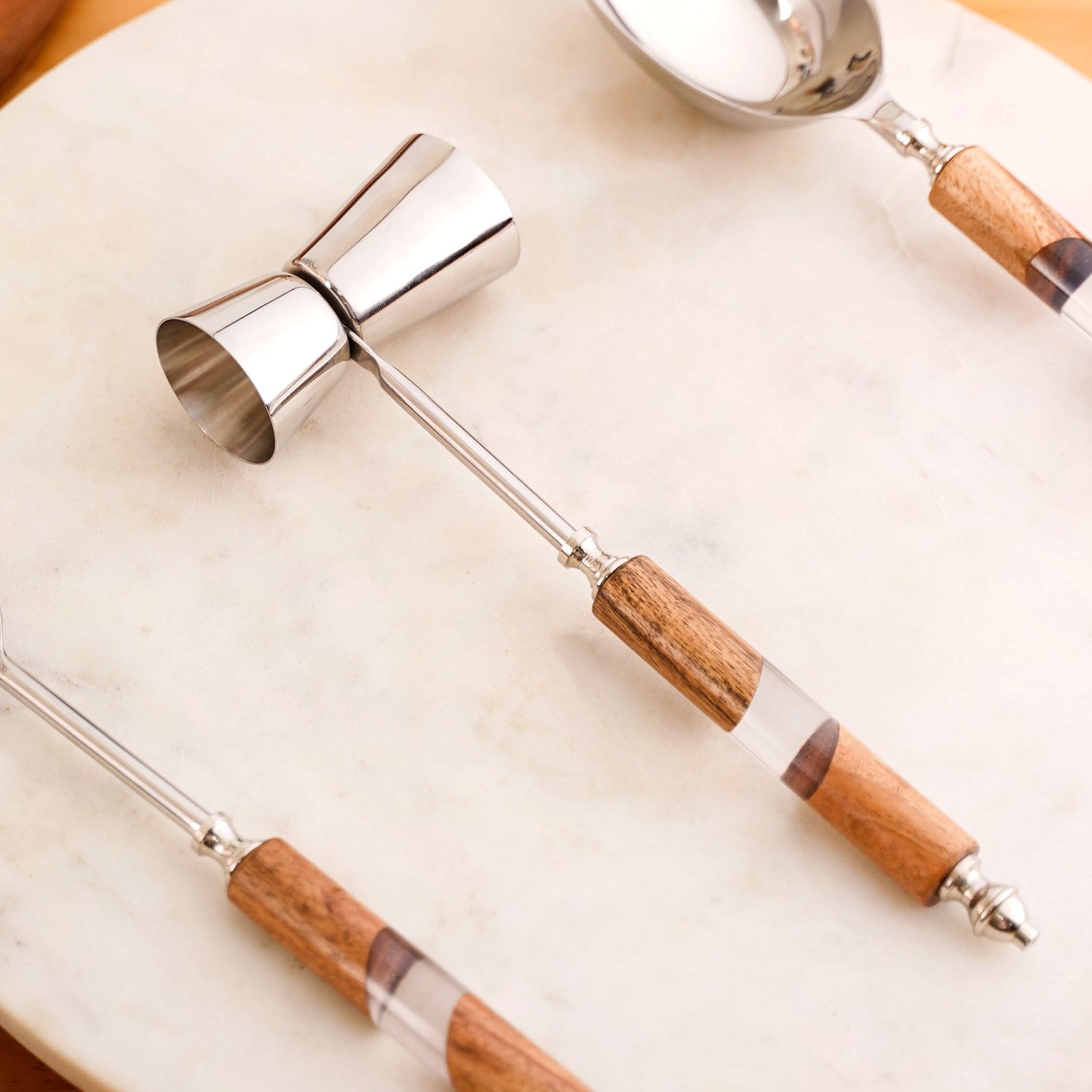 Benefits: Crafted from premium 304 stainless steel, these bar tools are food-safe, non-toxic, and BPA-free, offering durability and peace of mind. The resin handles provide a secure, comfortable grip and are designed to withstand regular use. The mango wood base stand not only enhances visual appeal but is also built for longevity, providing a sturdy foundation for this elegant and functional set.