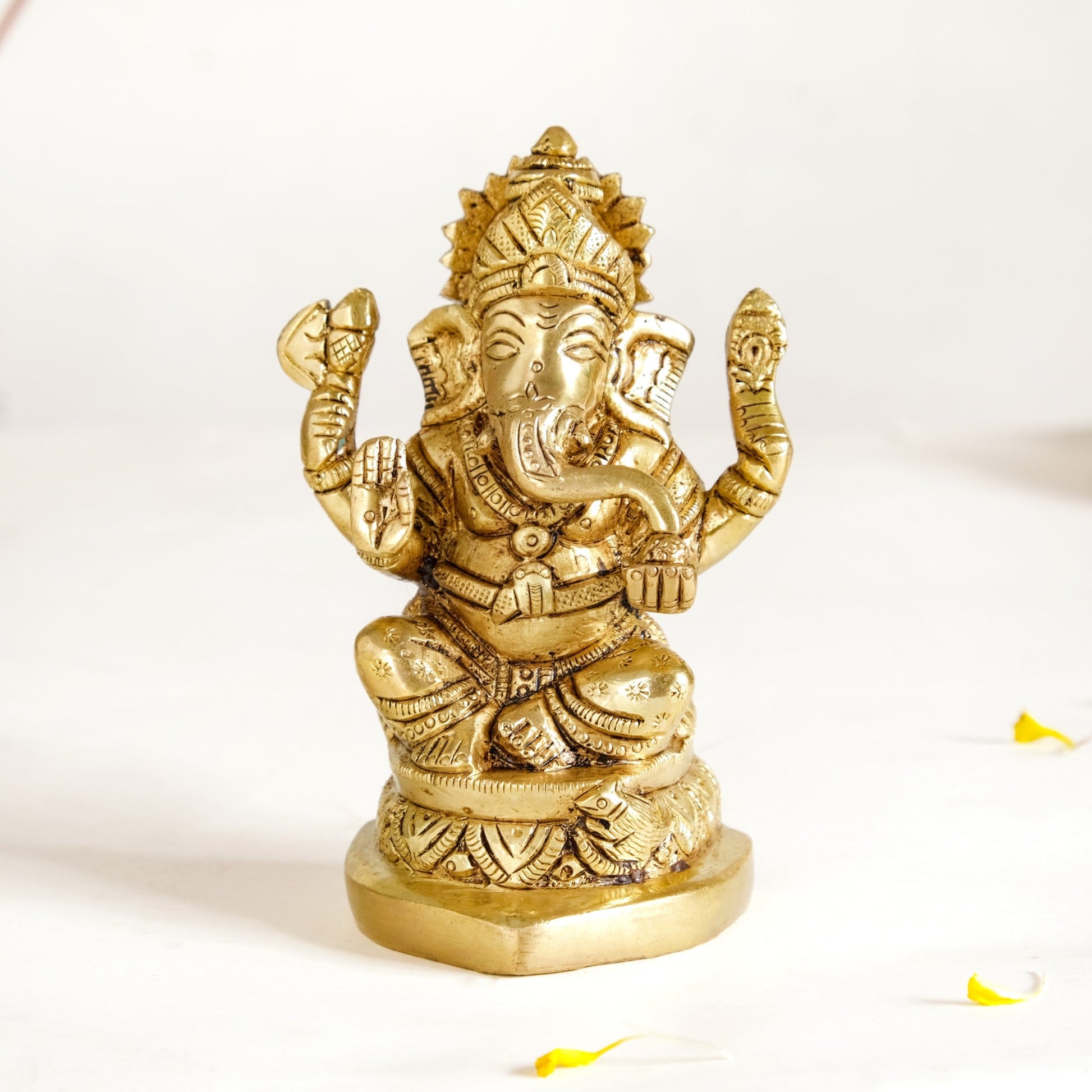 Design: Made from 100% pure brass material, they echo the timeless tales of creation and prosperity. Utilising the ancient art of sand mould casting, each detail is imbued with significance, reflecting the sacred narratives of gods and goddesses. With a fine brass finish, they exude regal charm, reminiscent of celestial realms.
