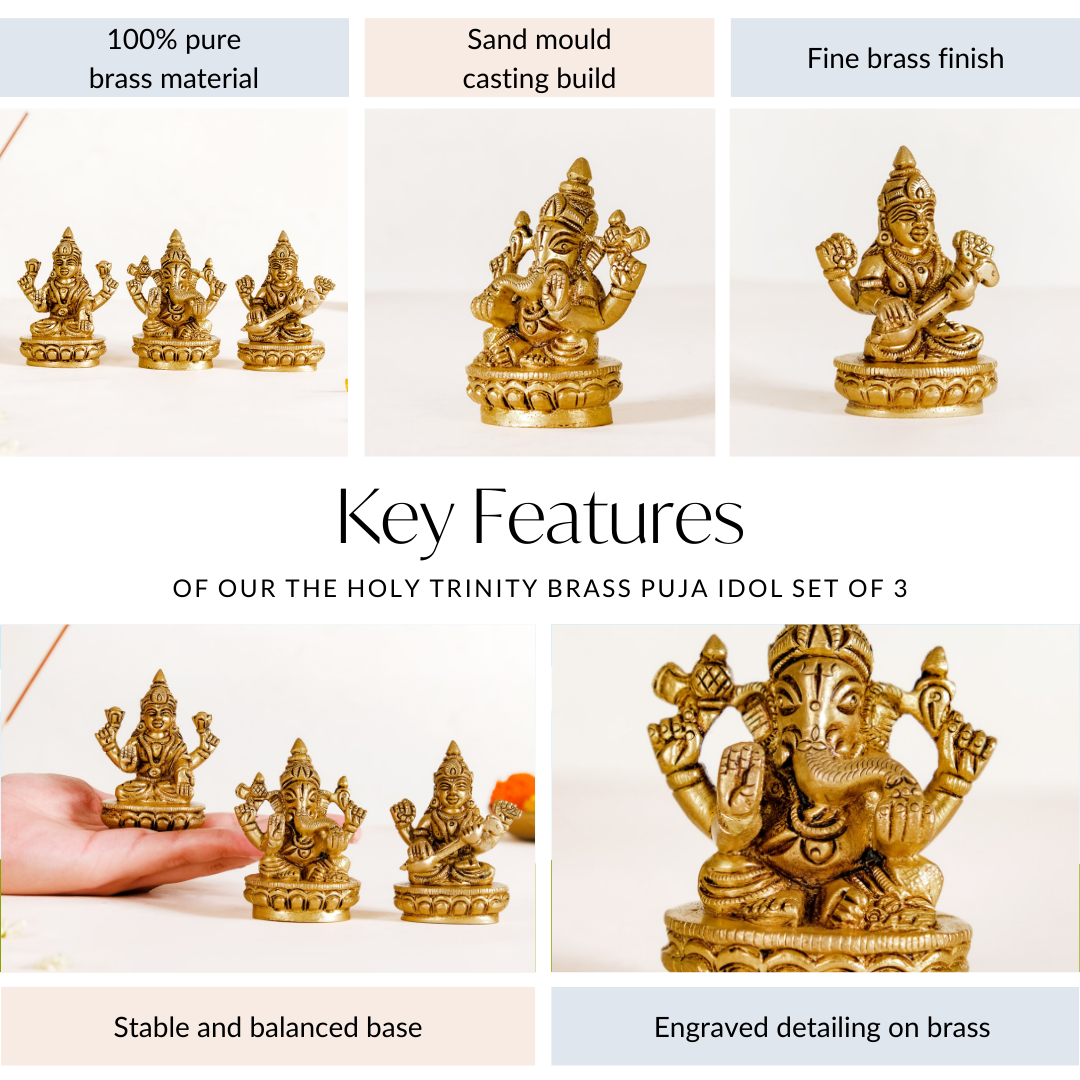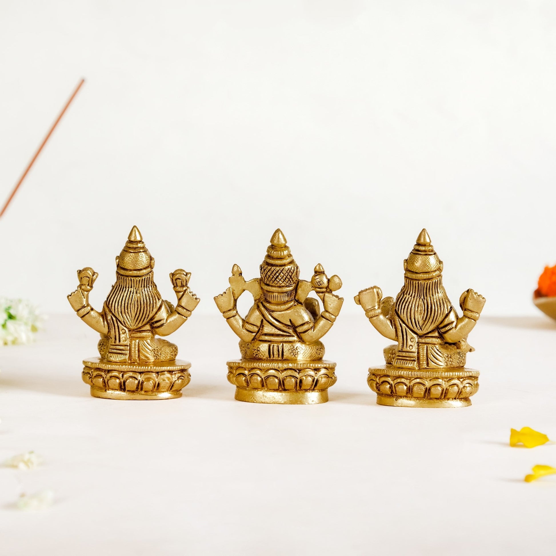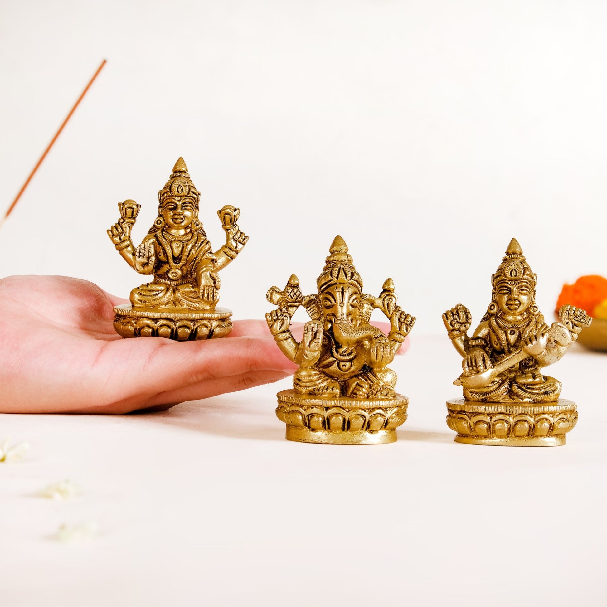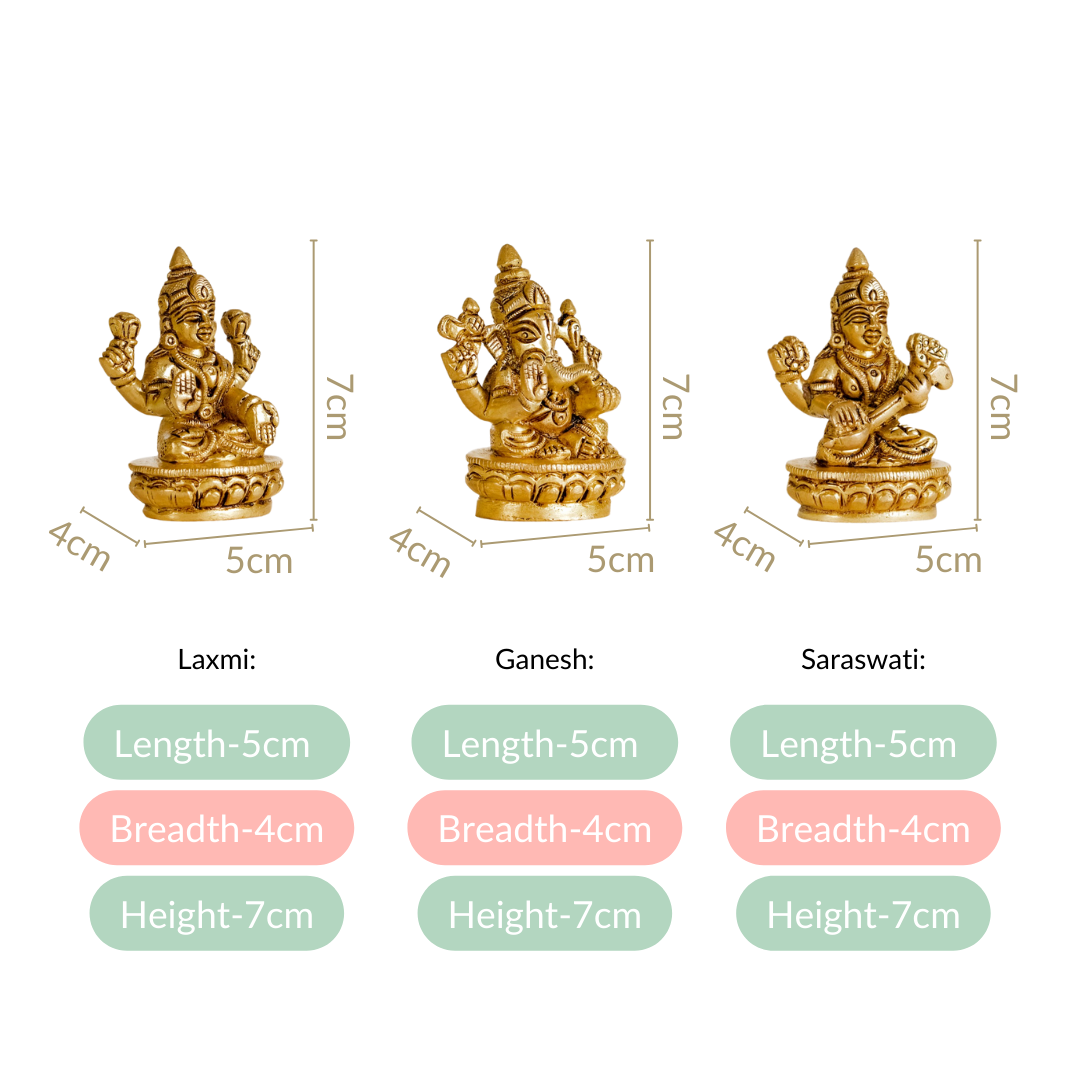 Ganesh Laxmi Saraswati Brass Puja Idol Set Of 3 7cm