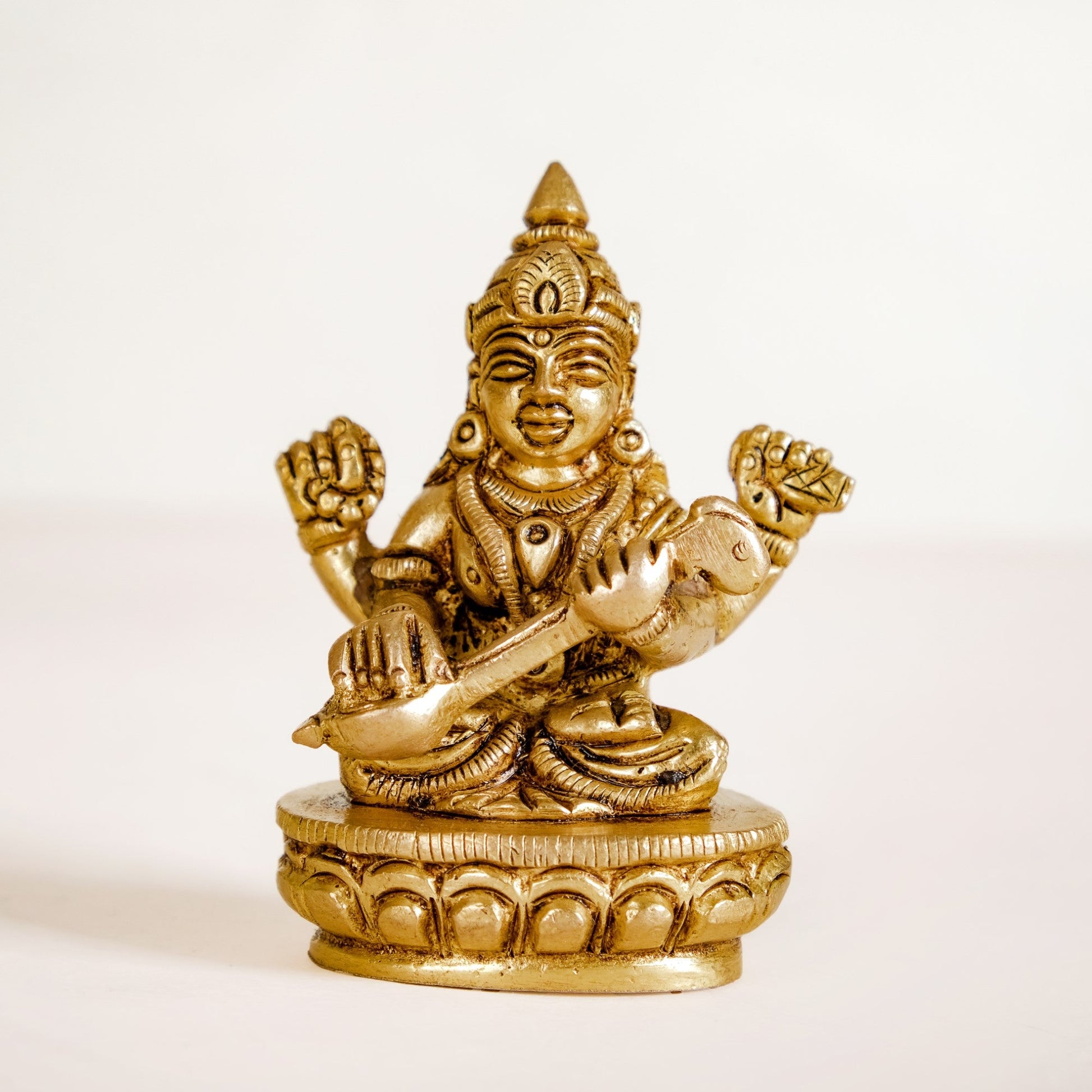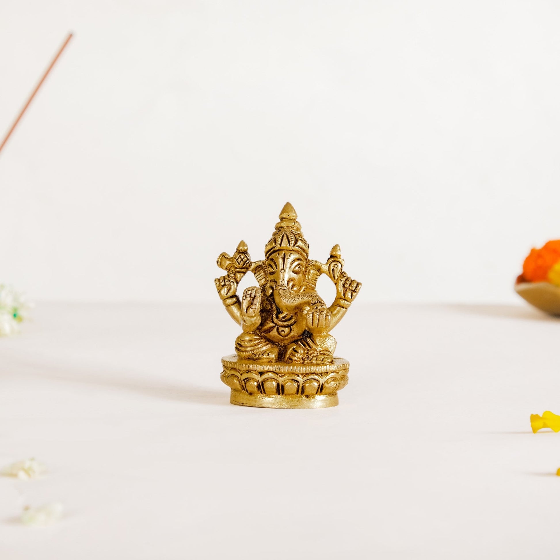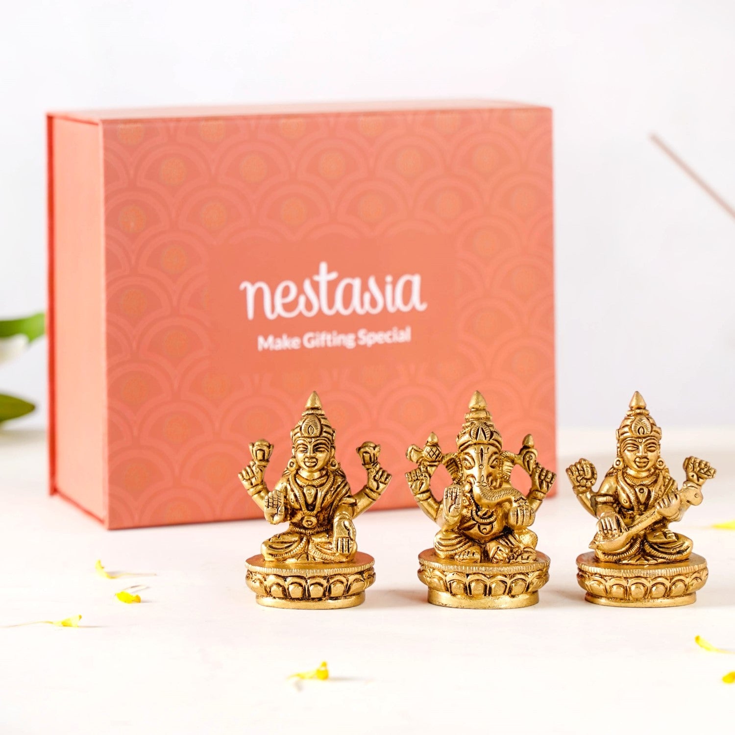 Ganesh Laxmi Saraswati Brass Puja Idol Set Of 3 7cm