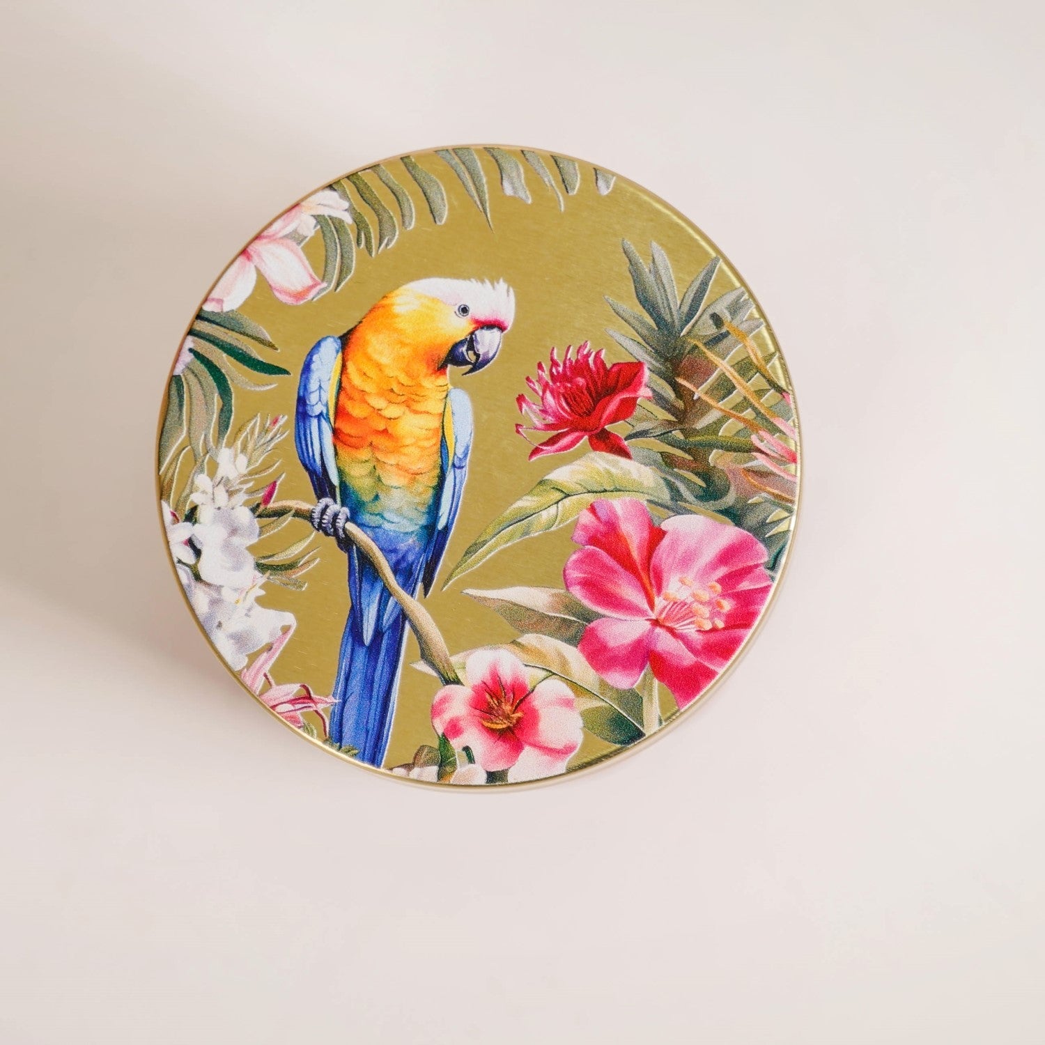 Design: This exquisite scented candle set is the perfect blend of elegance and artistry. Each scented candle is encased in a chic glass jar with a chunky ribbed texture that adds an alluring sophistication to any decor set-up. The vibrant tropical motif on the lid is the piece de resistance of these candles, making them beautiful decorative accents that will instantly elevate your home.