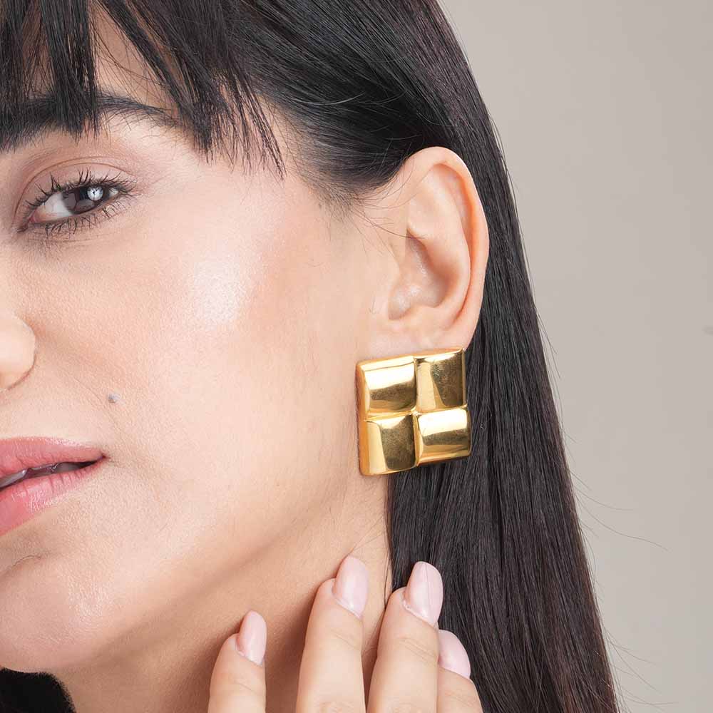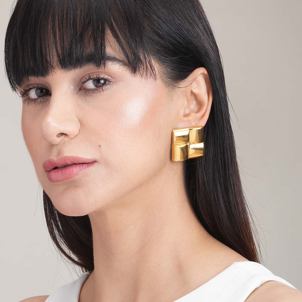 A touch of modern sophistication for the minimalist at heart. The Geometria earrings showcase clean lines and a perfect square silhouette, crafted in gleaming gold for an effortlessly chic look.