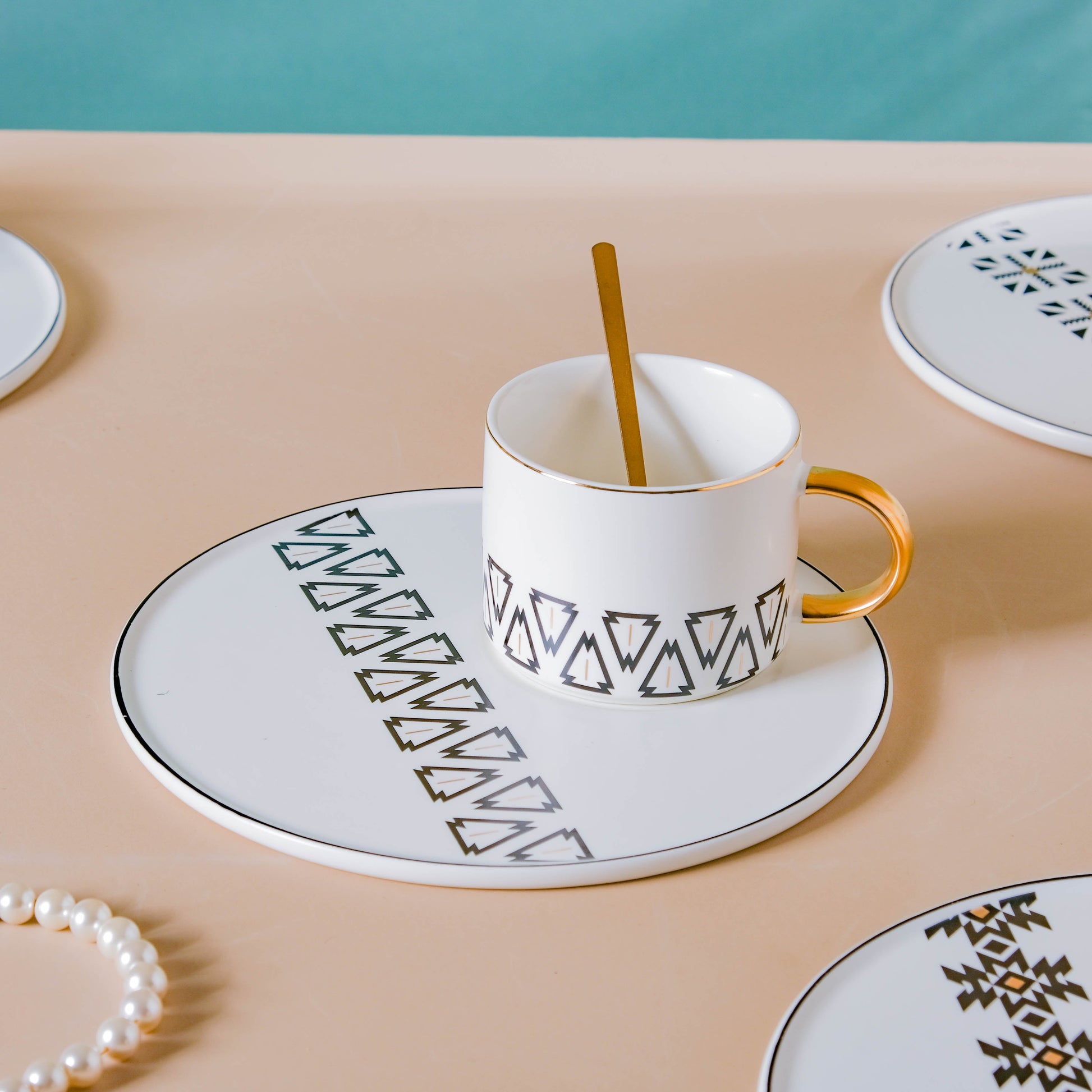 Geometric Cup And Plate Set