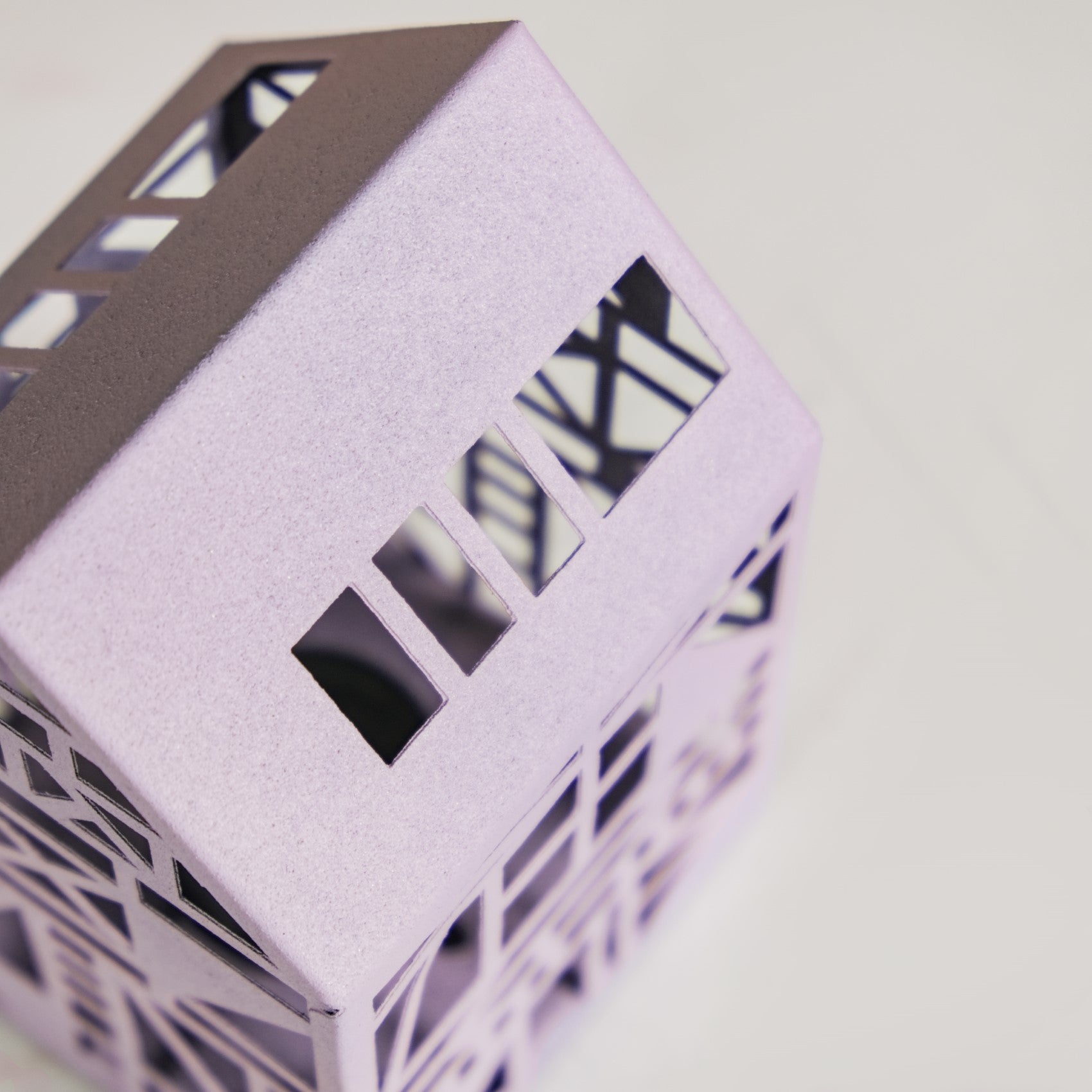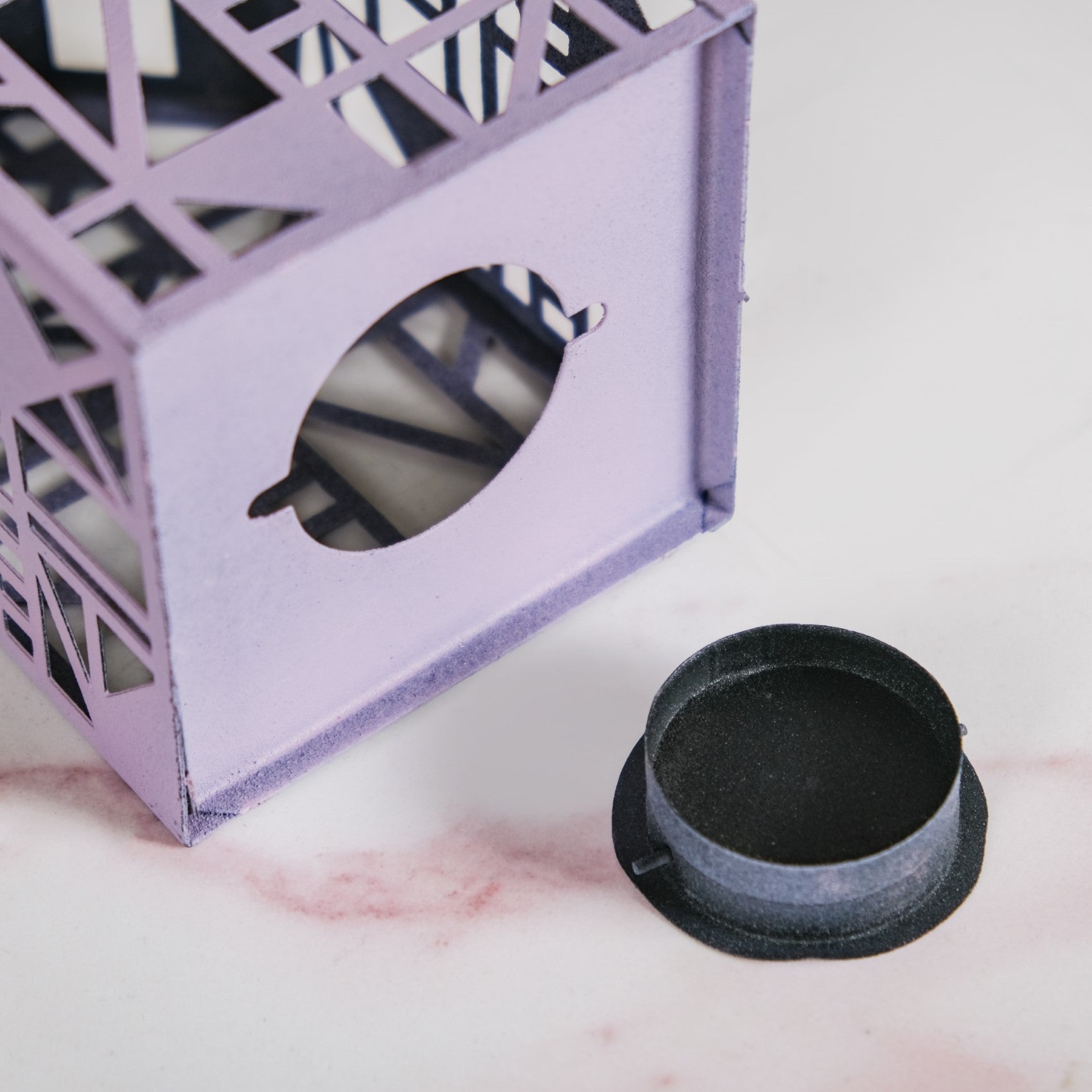 Add a touch of enchantment to your space with our set of 2 lavender metal lanterns. Crafted from rust-resistant iron, these lanterns are not just durable but also exude elegance. With intricate geometric cutwork detailing, they promise to be the highlight of any room. Each lantern features a built-in removable tea light candle holder for easy use. Their lightweight hut-shaped design makes them versatile for any setting. Finished with a powdered matte finish, these lanterns are ideal for adding a festive glow to your decor. Illuminate your space with charm and sophistication with these delightful lanterns!