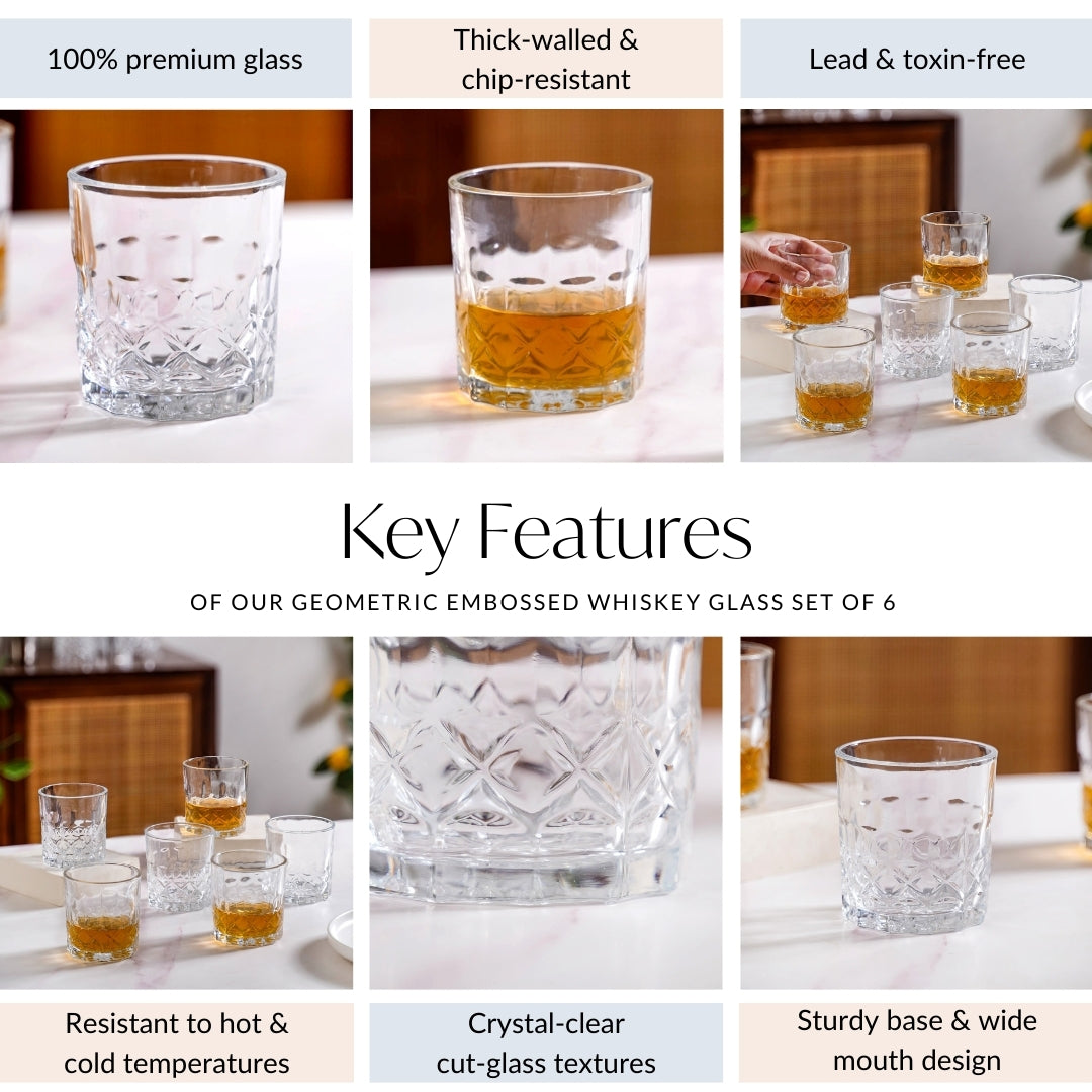 Geometric Embossed Whiskey Glass Set Of 6 230ml