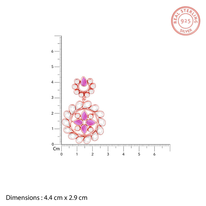 These rose gold earrings have a flower motif studded with rose-cut glass stones and coloured stones. Presenting Trendy Freak's chic #VivaahDaSwag Collection for an unforgettable wedding.