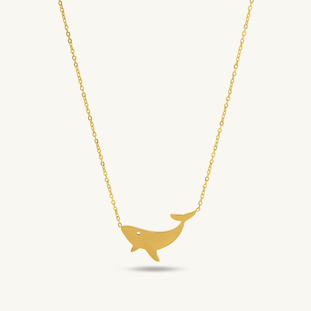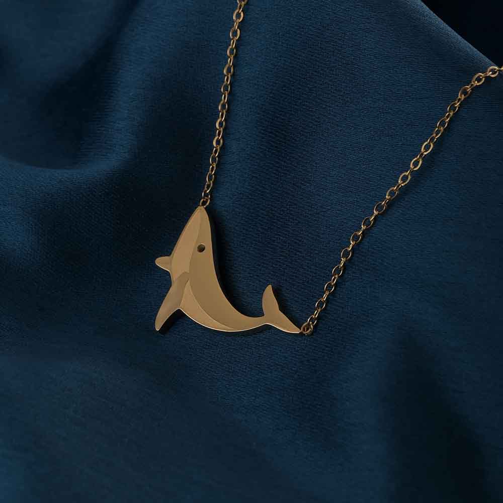 Make a bold statement with the Gilded Shark Necklace. This captivating piece features a gleaming shark pendant, crafted in rich gold-tone metal.