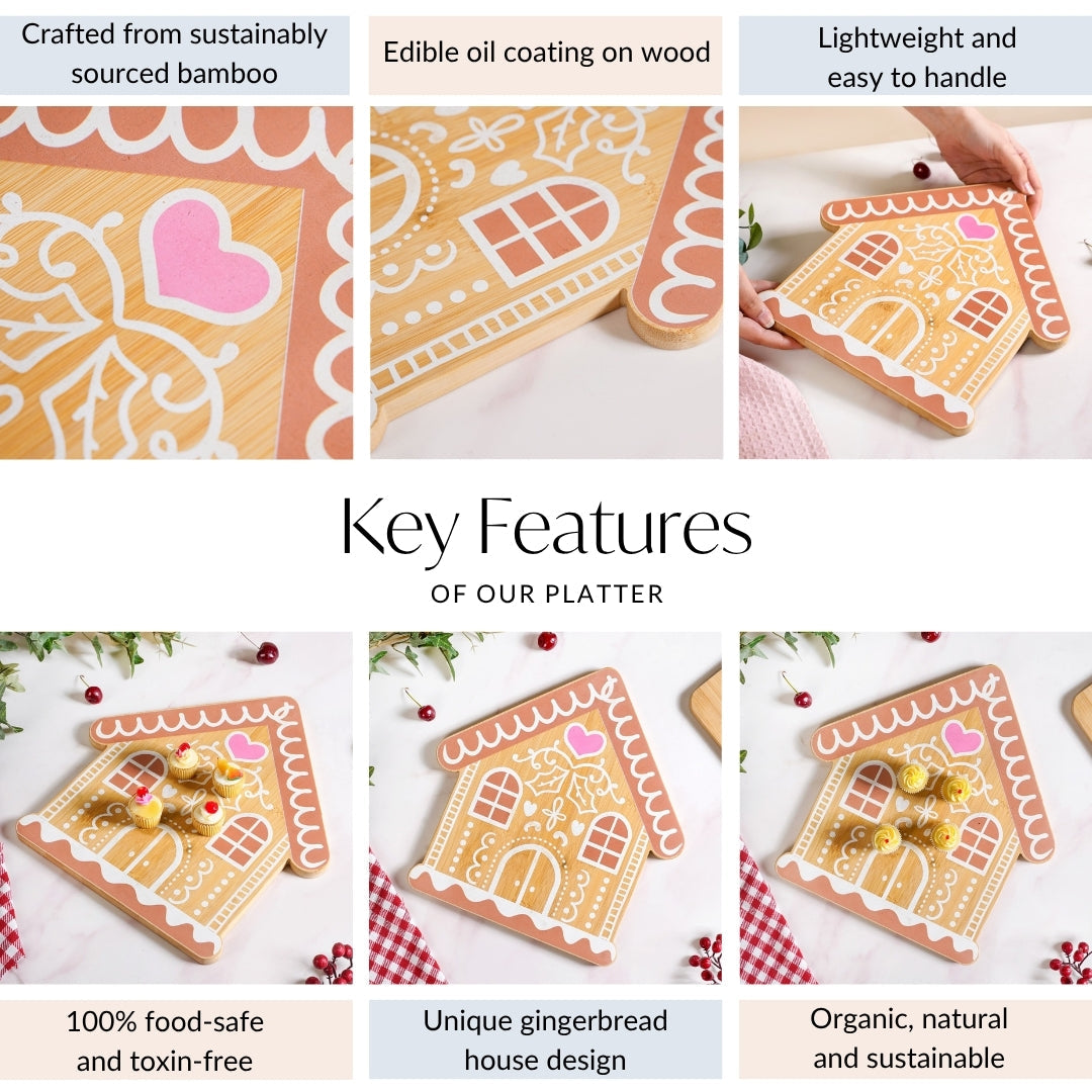 Bring in the goodness of Christmas to your kitchen with this whimsical gingerbread house-shaped bamboo platter that is perfect for serving, decorating, or gifting during the holiday season.