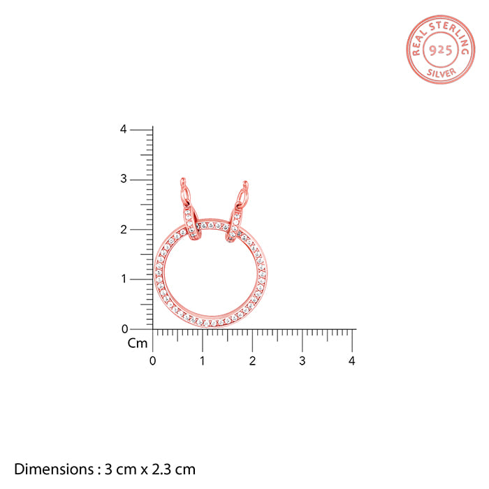 This rose gold pendant with a link chain features a circular motif studded with zircon.