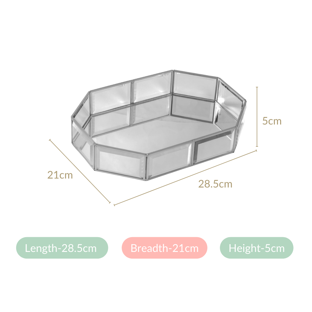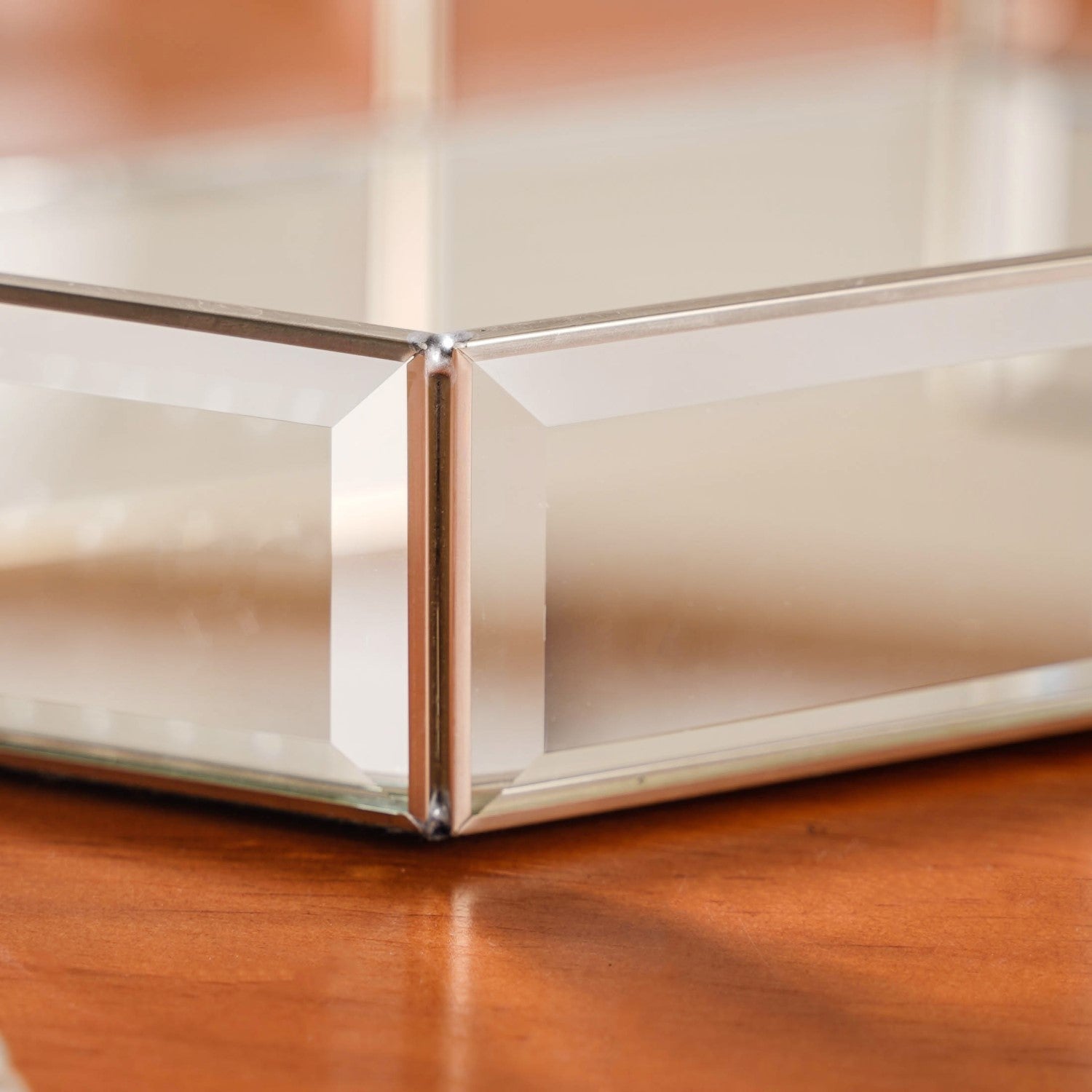Design: Crafted from premium-quality tempered glass and enclosed by gold rust-resistant metal borders that have been expertly set by hand, this decorative tray is perfect for some glitz and glamour. The sides of the tray are adorned with bevelled glass and the base with an anti-glare mirror for crystal-clear reflection. The transparent trinket tray is complete with an anti-skid foam padding at the base, making it the ultimate blend of style and practicality.