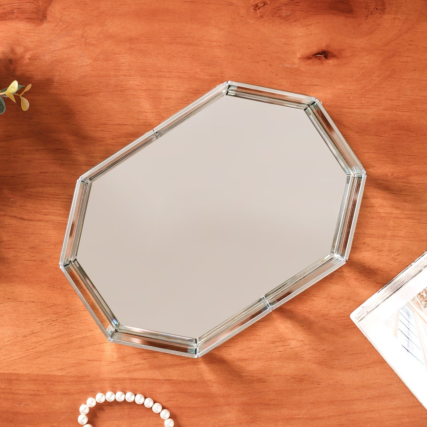 Brighten up your vanity area with our luxurious decorative tray. Step up your organization game and add some shimmer to the room with this captivating glass tray!