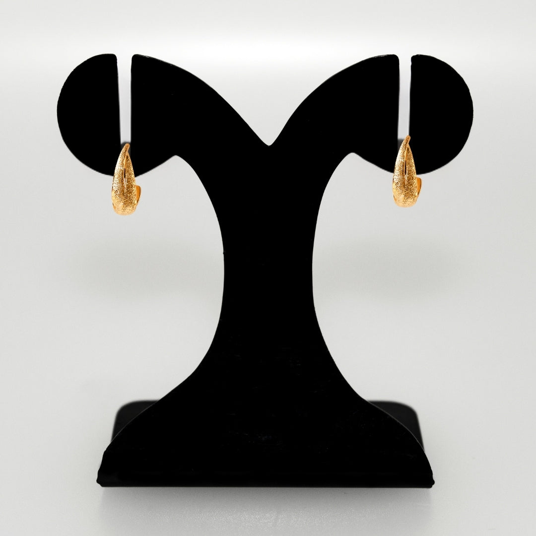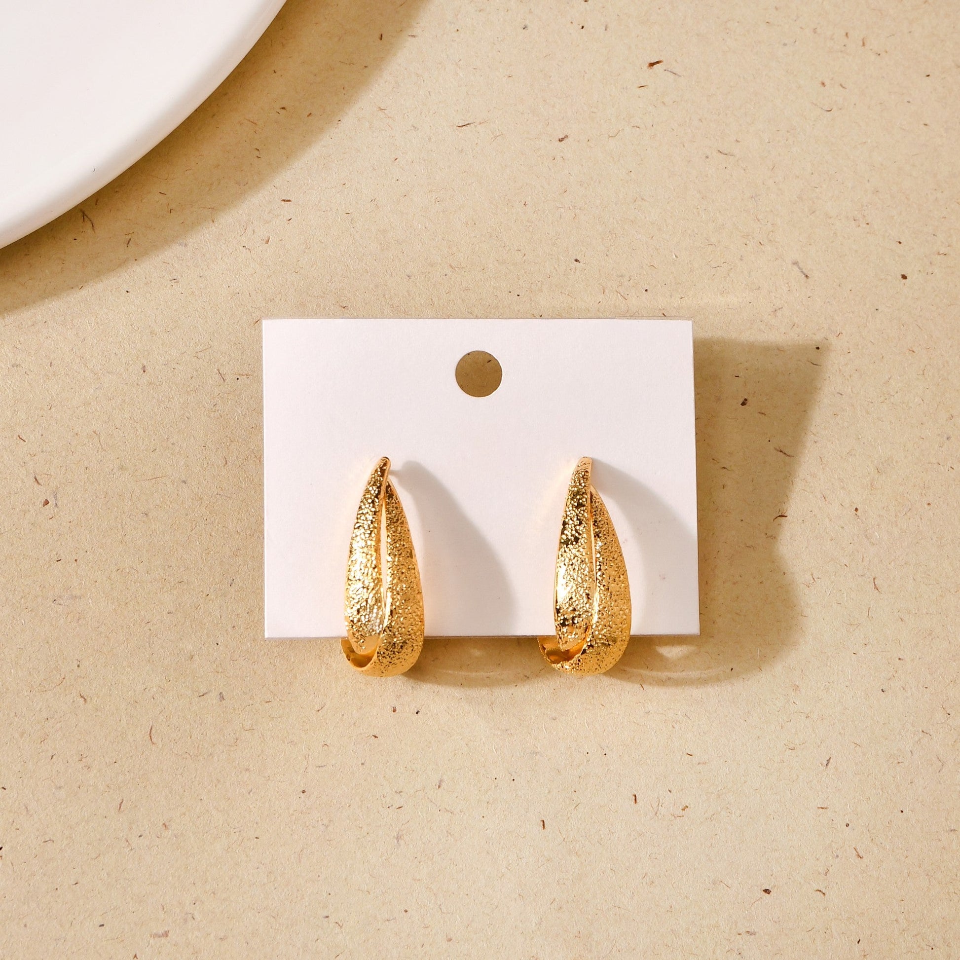 Add a touch of elegance and shimmer with these stunning gold drop earrings. Crafted from high-quality metal and adorned with sparkling glitters, they catch the light beautifully, creating a radiant glow. The design features two separate elements that delicately overlap at the end, forming a cohesive, fluid structure.