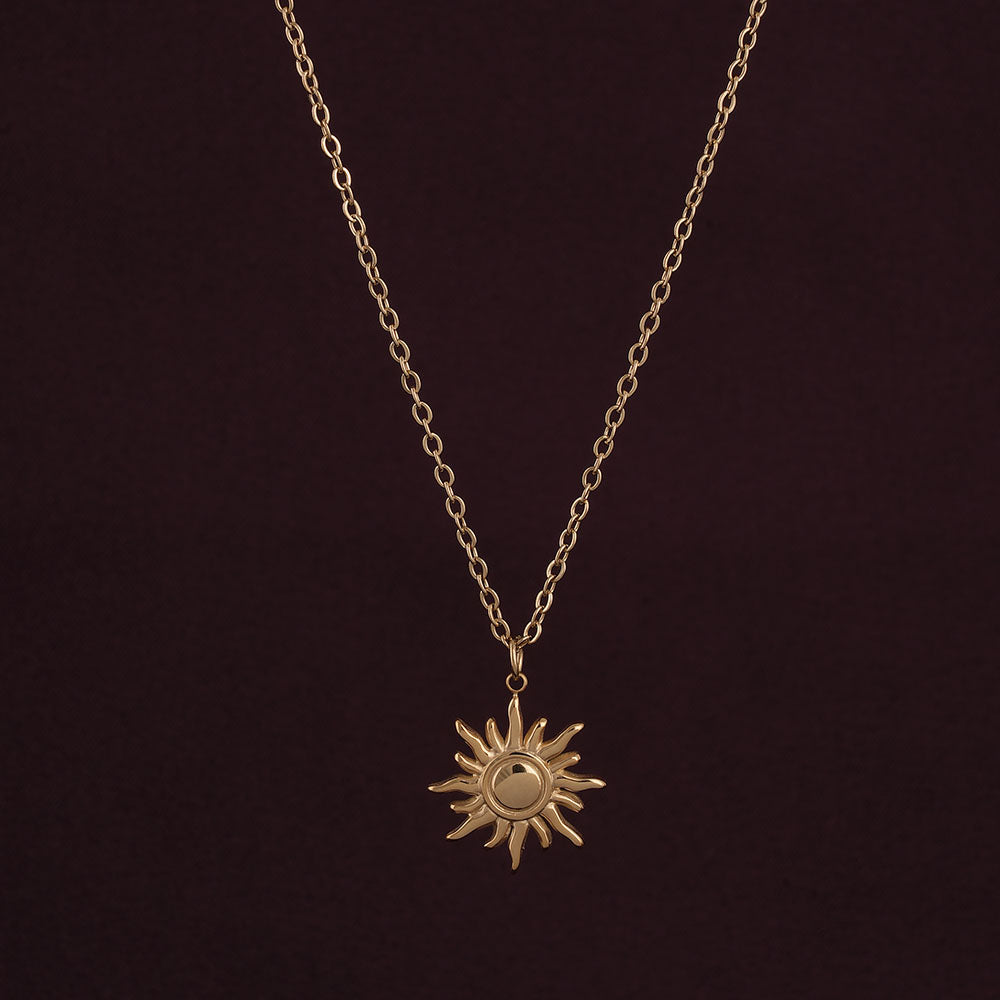 The Glowing Sun Pendant Necklace brings radiant elegance to any outfit with its sun-inspired design. Crafted in stainless steel with a luminous 18k gold tone, this waterproof and anti-tarnish necklace adds a warm, chic accent to casual, office, or evening wear. Perfect for everyday or festive ensembles, it enhances your look with modern, sophisticated charm.