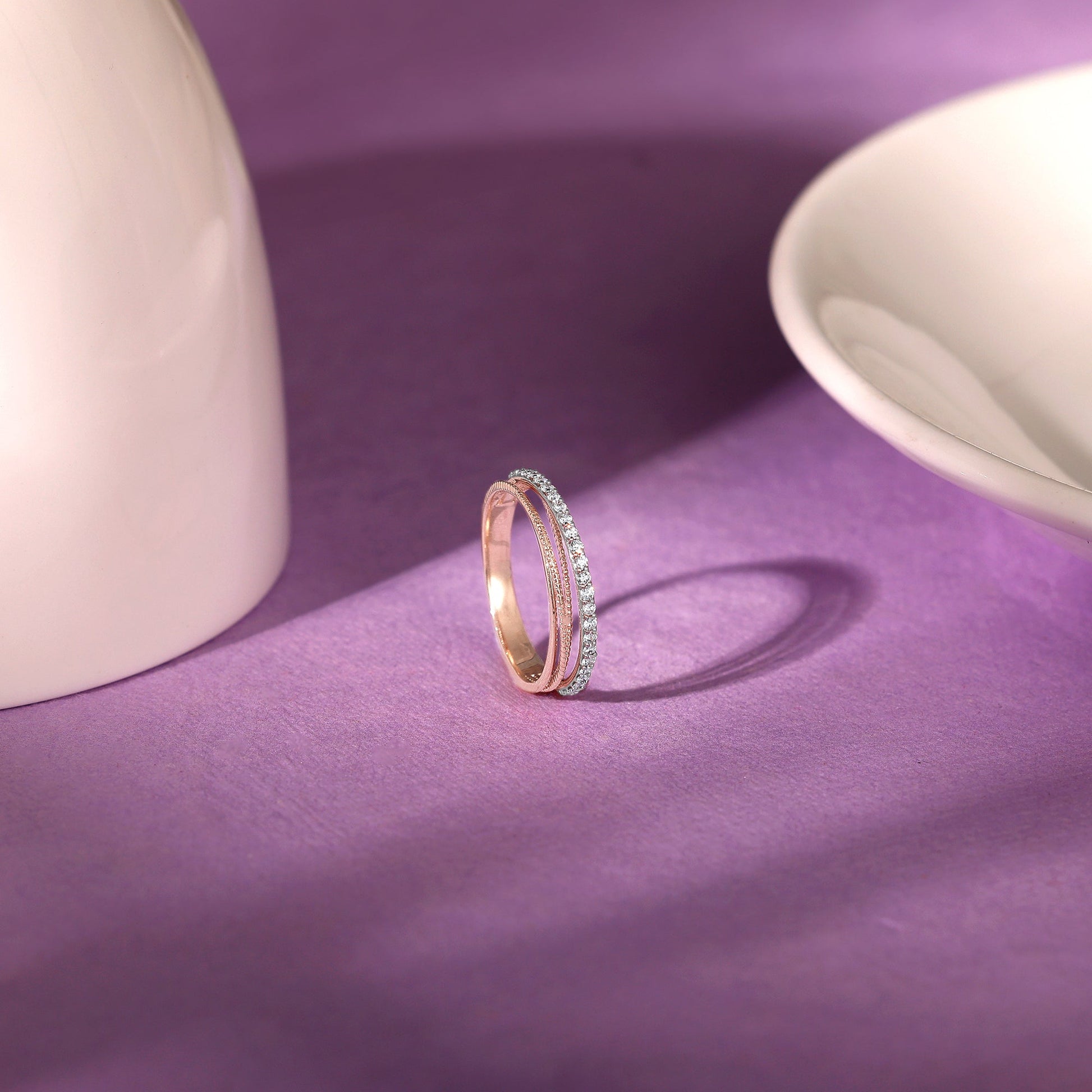This rose gold ring features a classic band design with lab-grown diamonds.