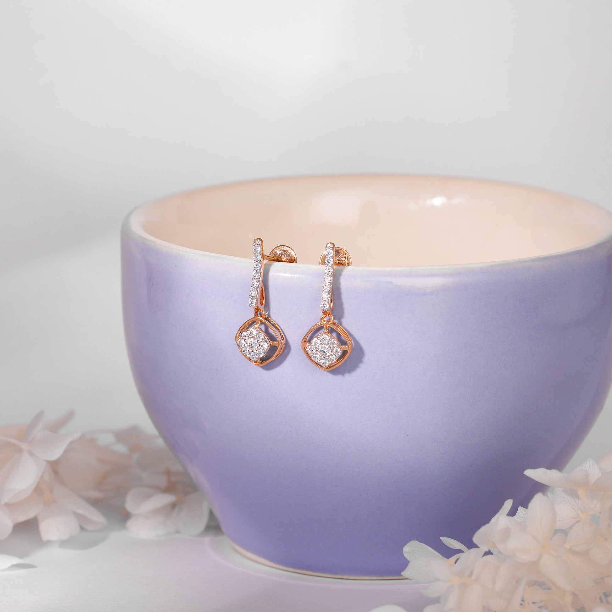 Rose Gold Delicate Shine Diamond Earrings