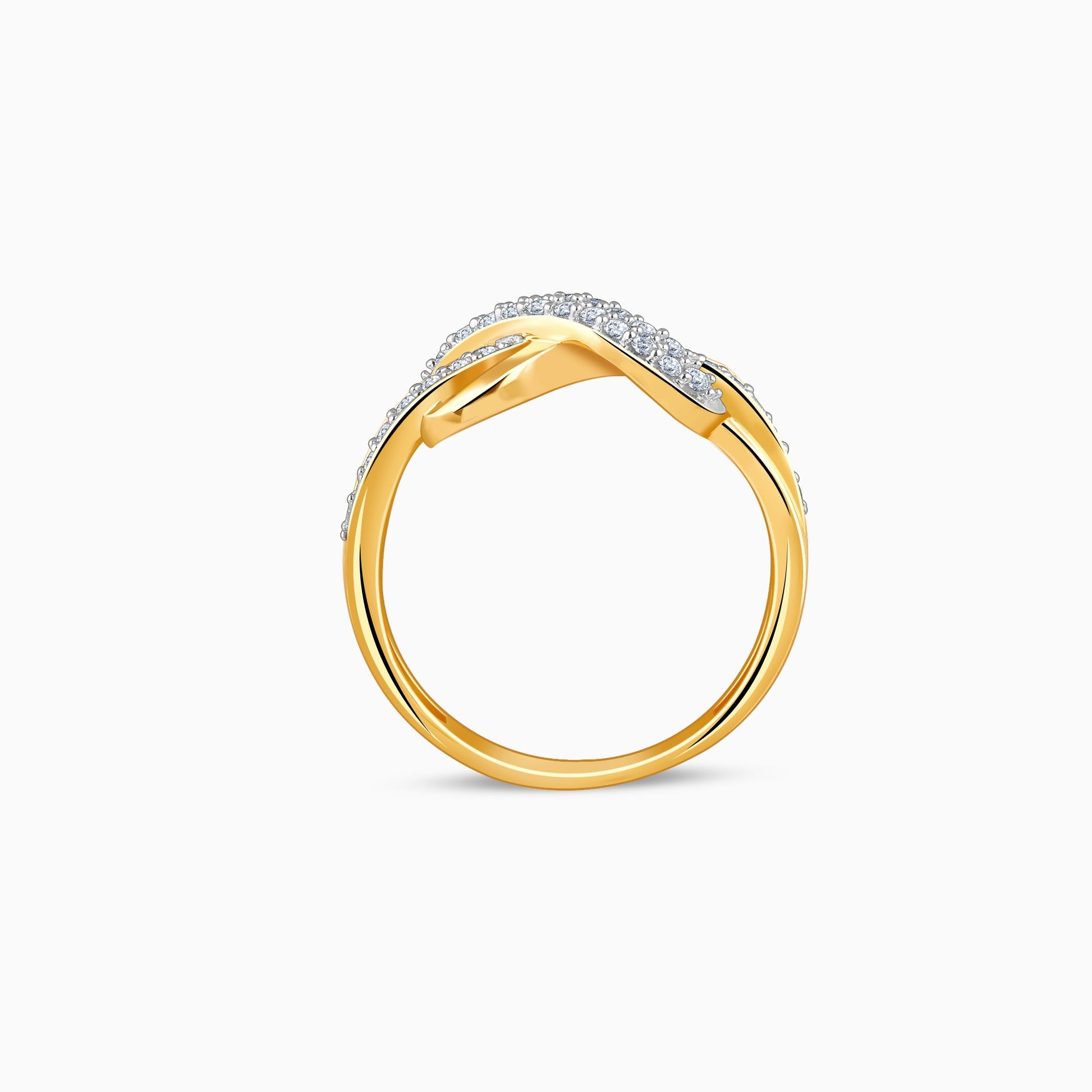 This pure gold ring features a flowing infinity motif set with sparkling lab grown diamonds.