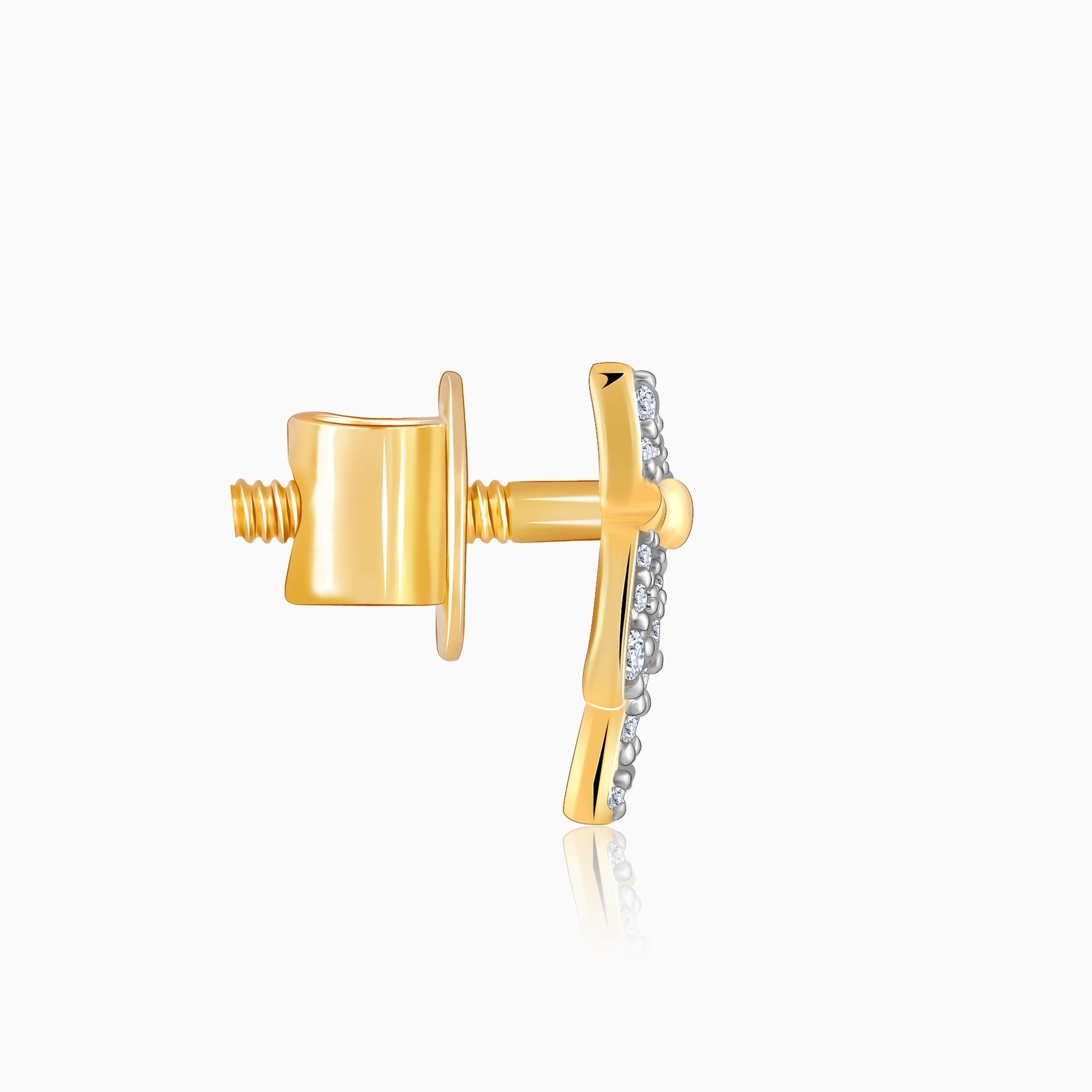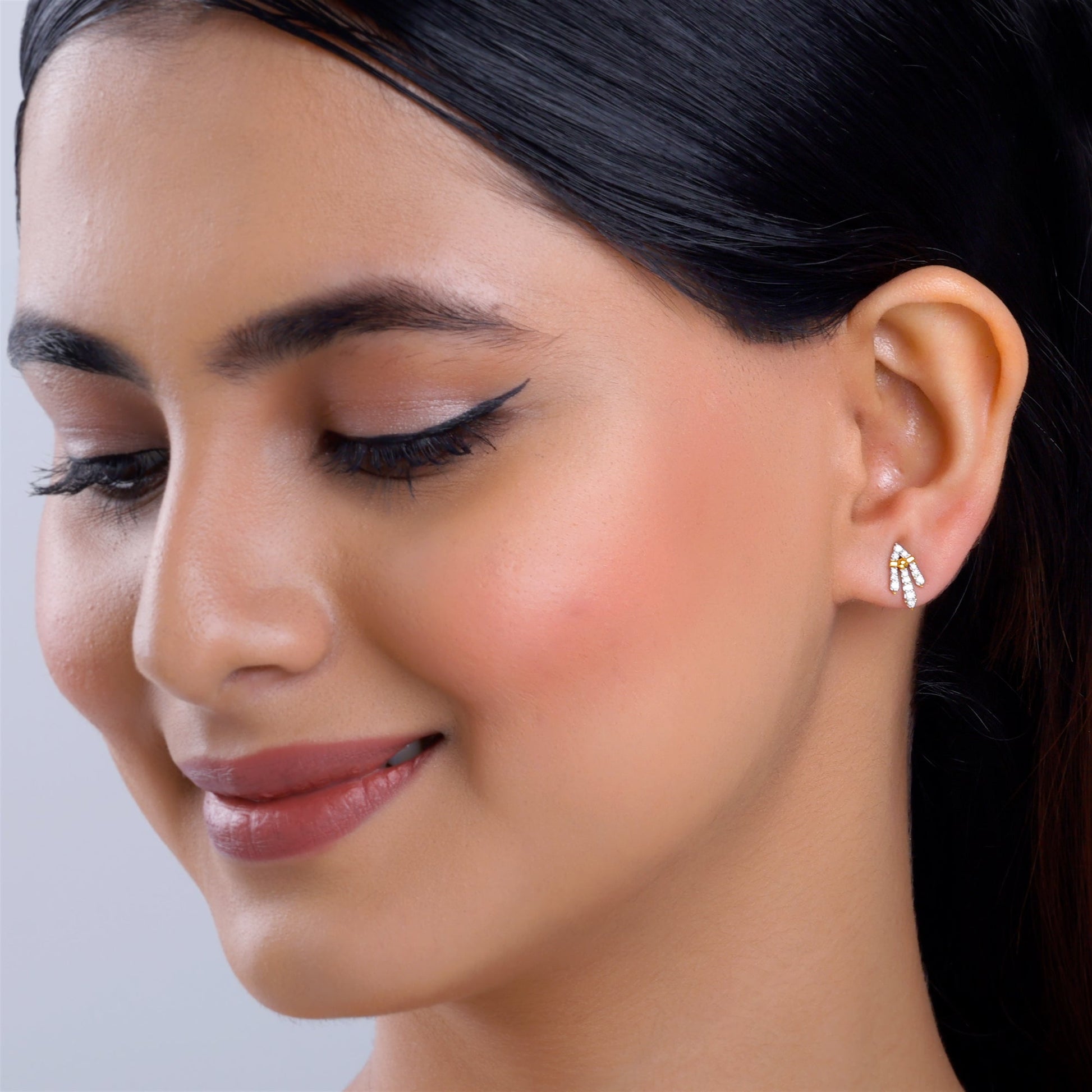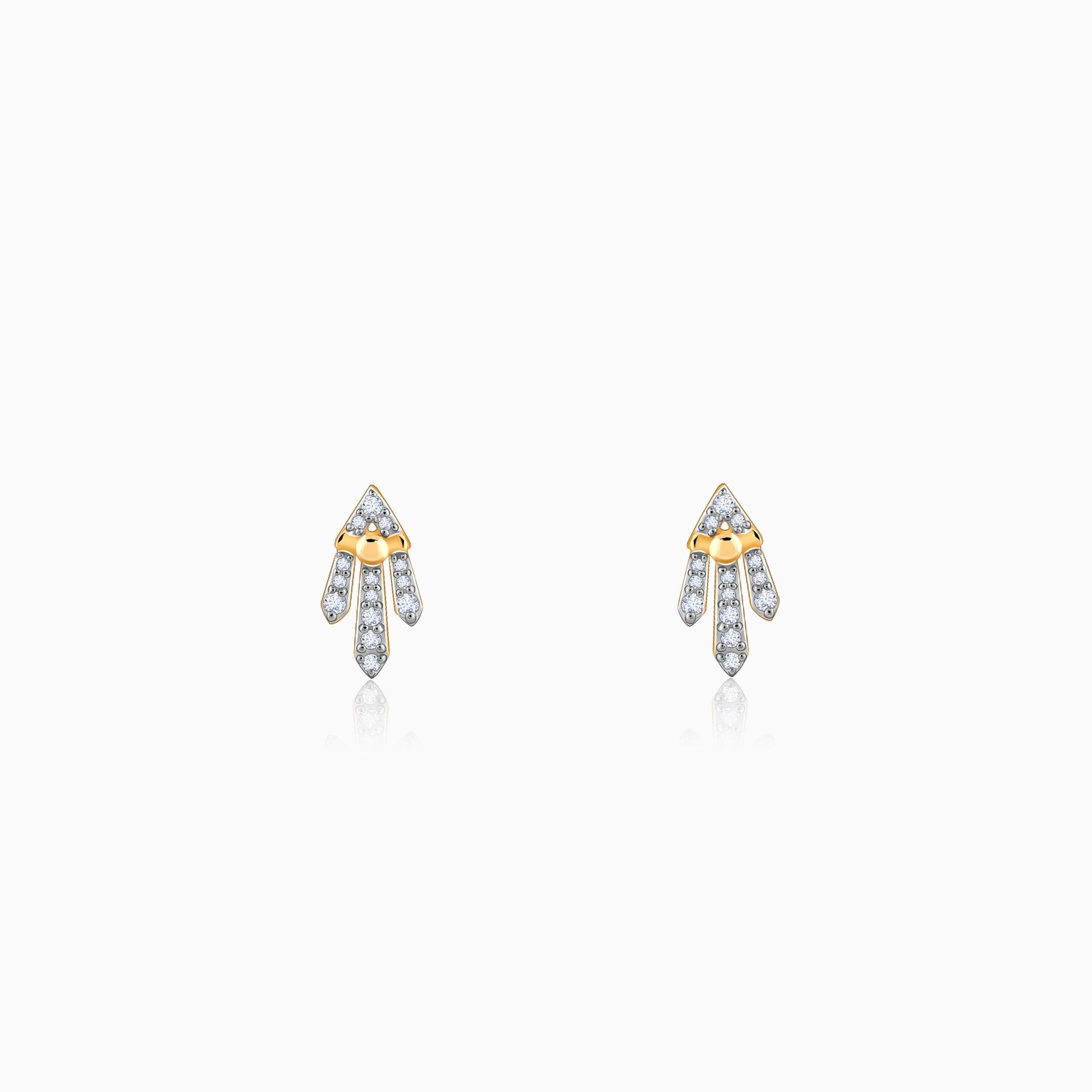 These pure gold earrings feature a triangle motif with three narrow triangles connected to it, set with lab-grown diamonds.