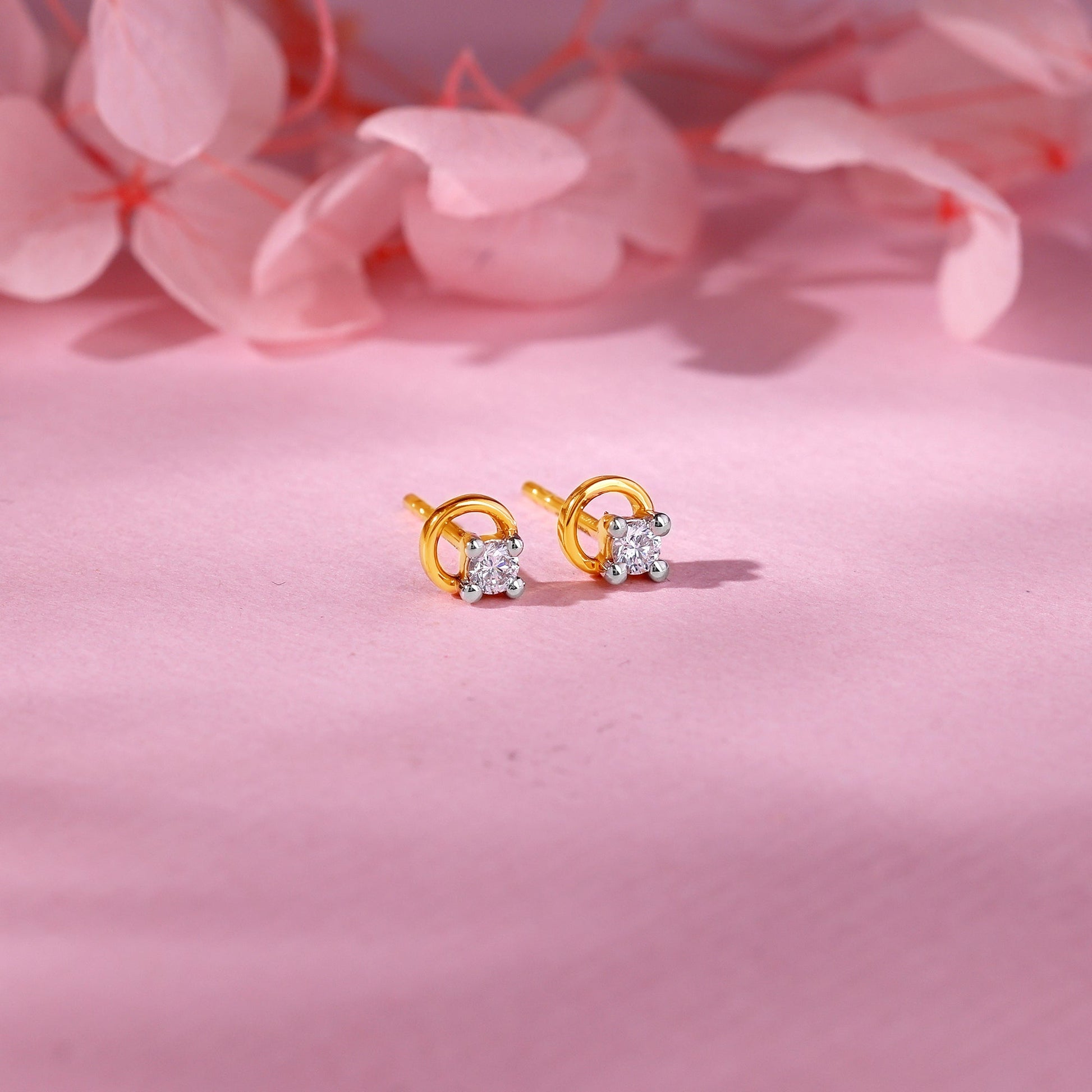 These gold stud earrings feature a circle motif with a lab-grown diamond on the top.