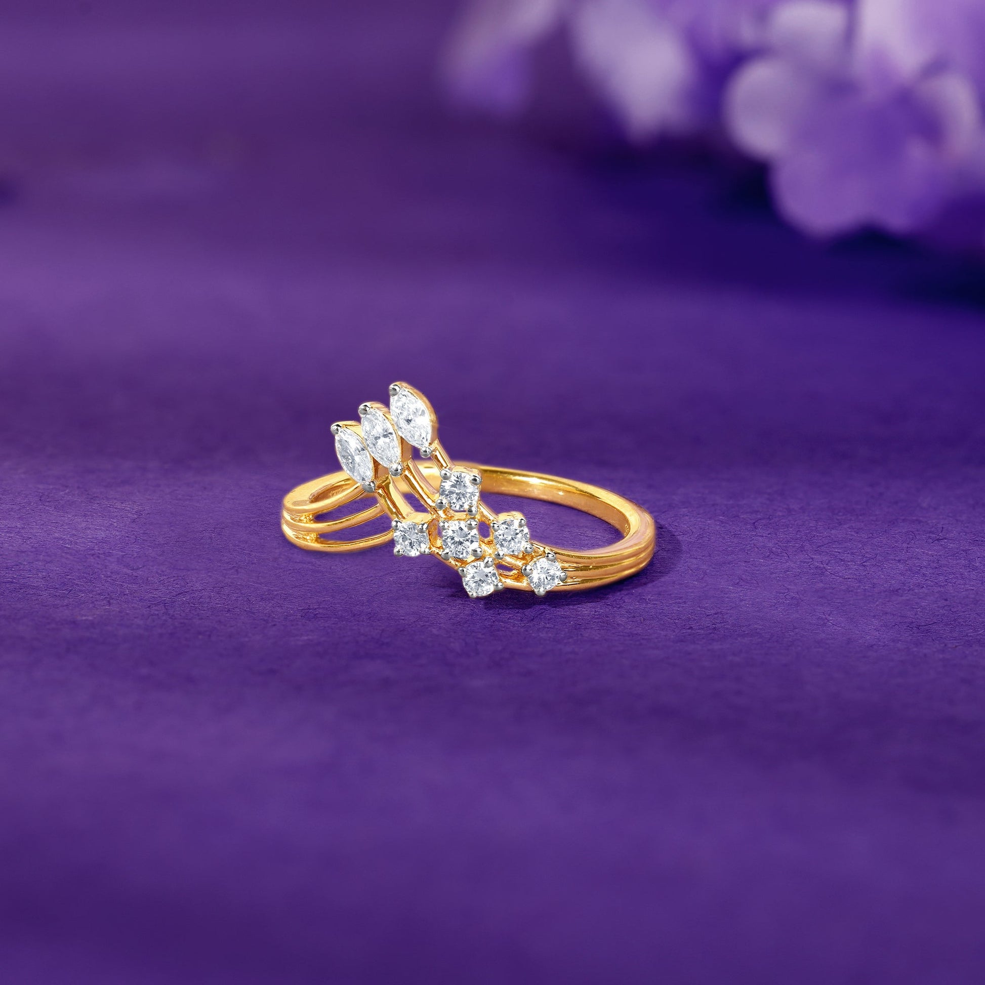 This gold ring for women features sparkling floral clusters with lab grown diamonds arranged along an elegant split band.