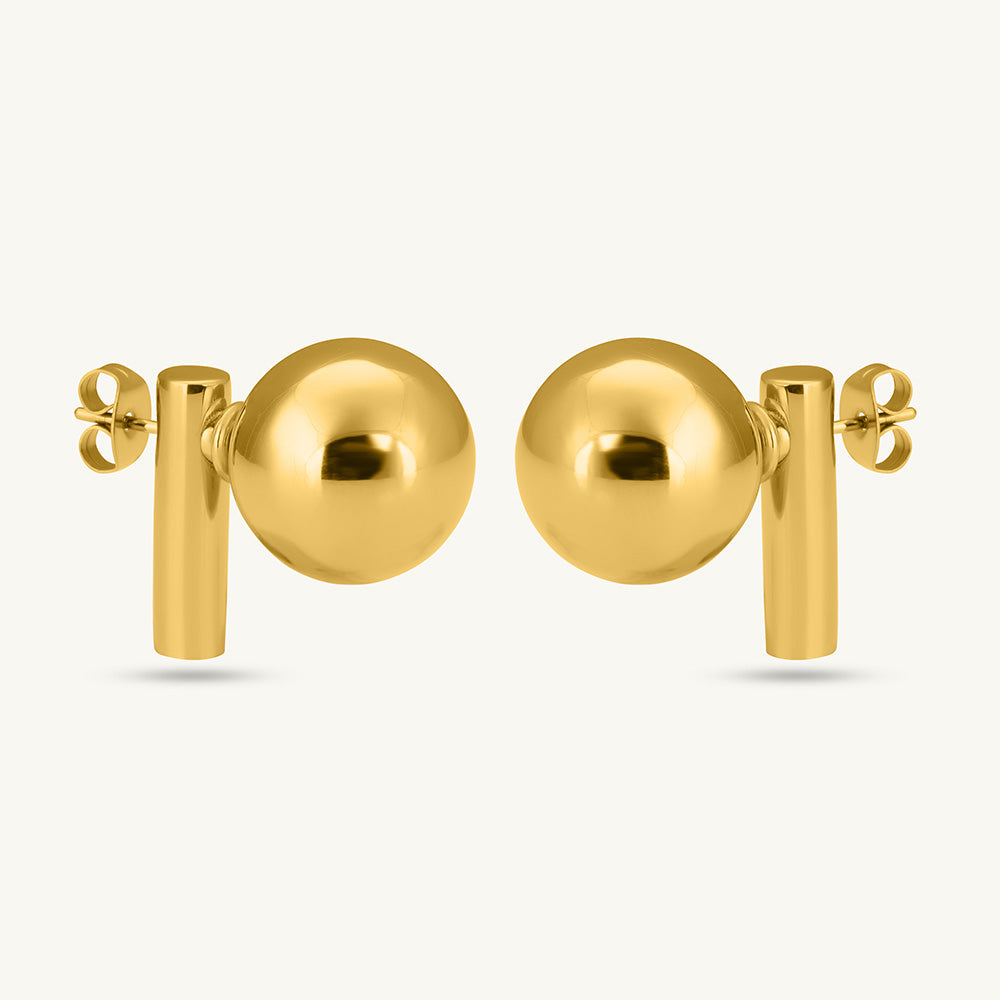 Gold Ball and Bar Earrings