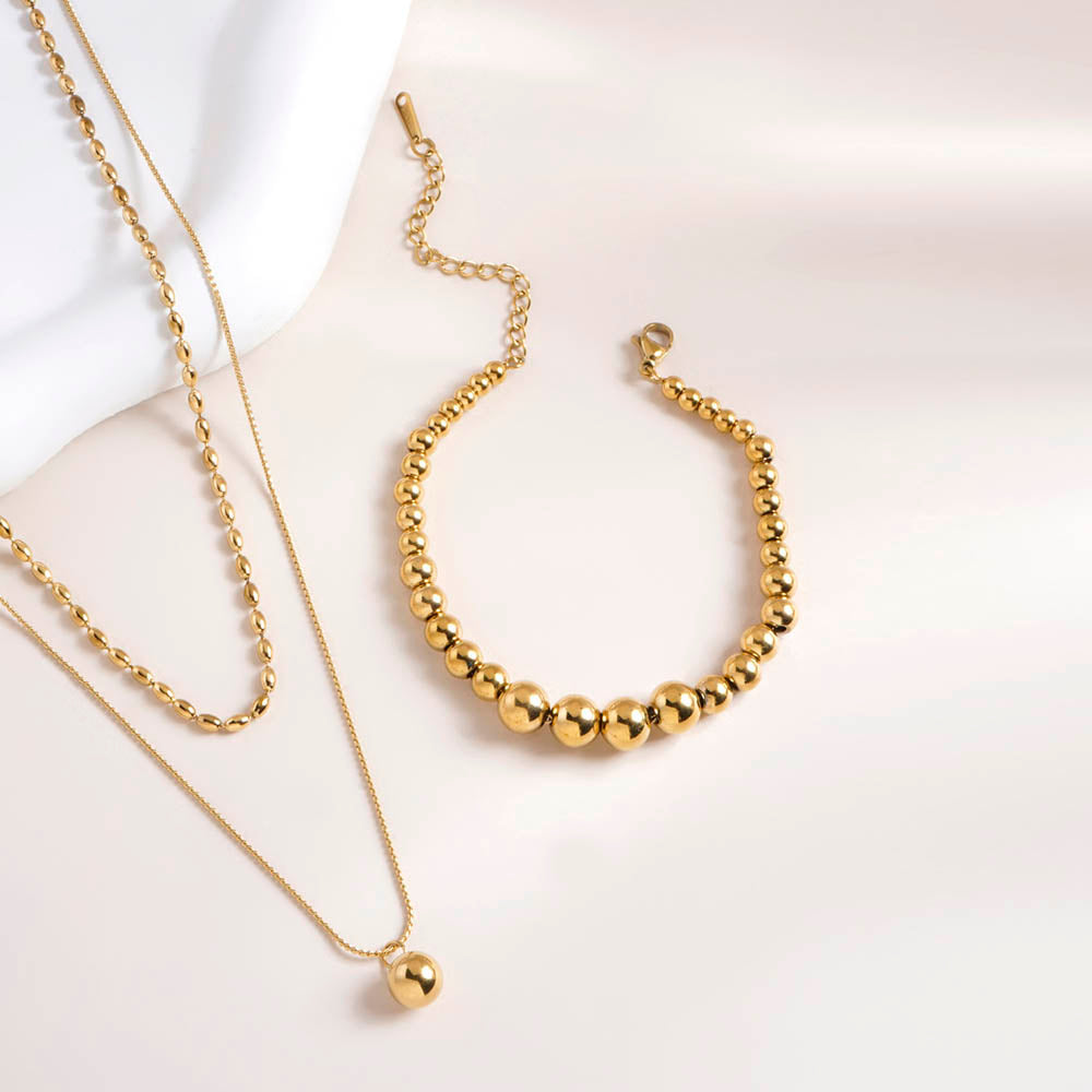 Gold Beaded Bracelet & Two-Layered Bead Necklace Combo Set