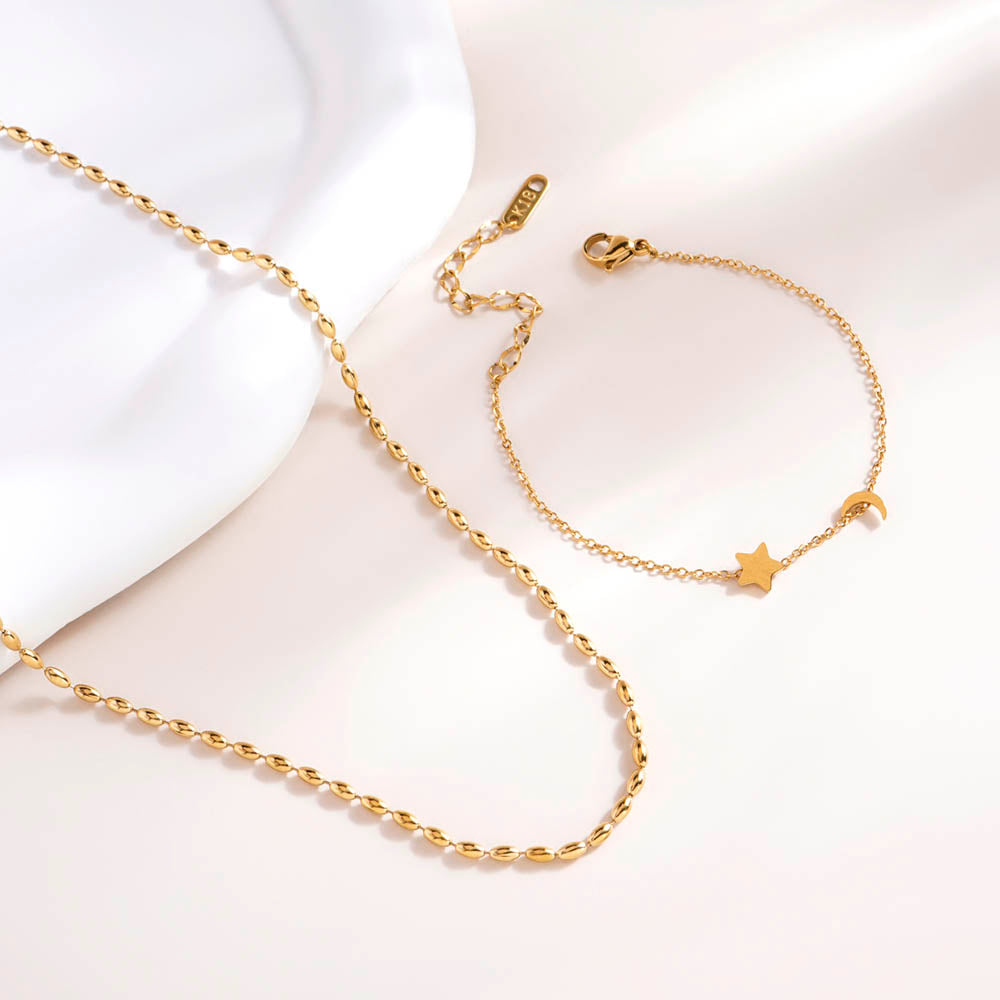 Gold Beaded Necklace & Star Moon Bracelet Combo Set