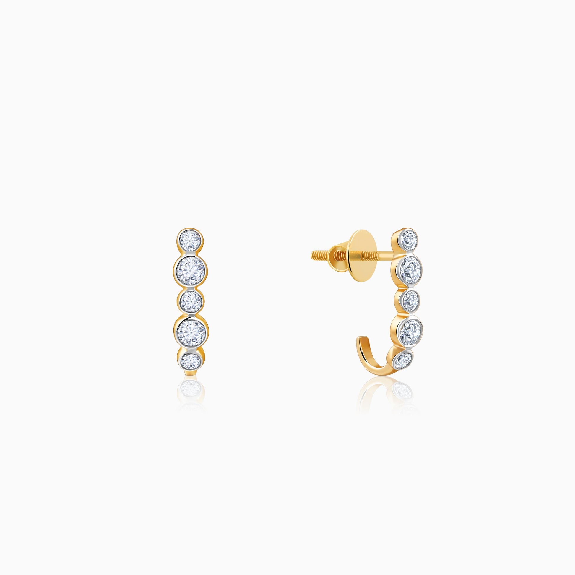 These pure gold earrings for women feature a J-hoop design with five round-cut lab grown diamonds in alternate sizes.