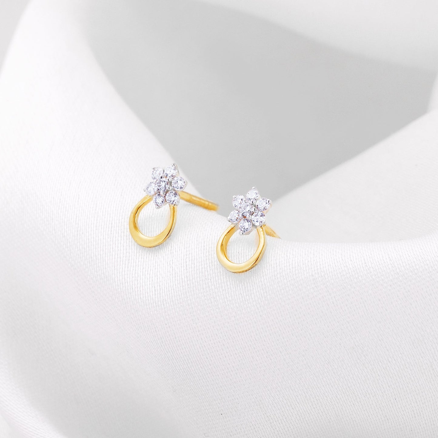 These gold stud earrings have a semi-circle halo with lab-grown diamonds placed tantalisingly to give them an ethereal look.