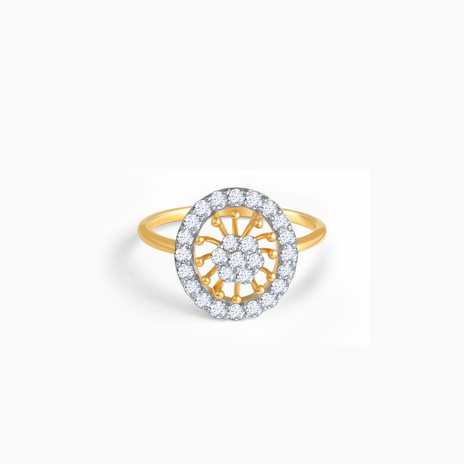 This pure gold ring for women features a wheel design. The elegant design is studded with lab grown diamonds.