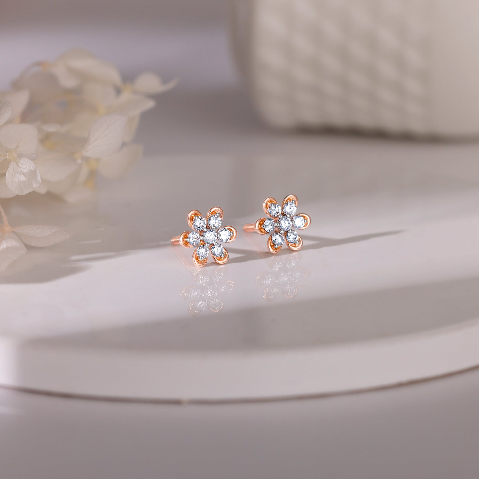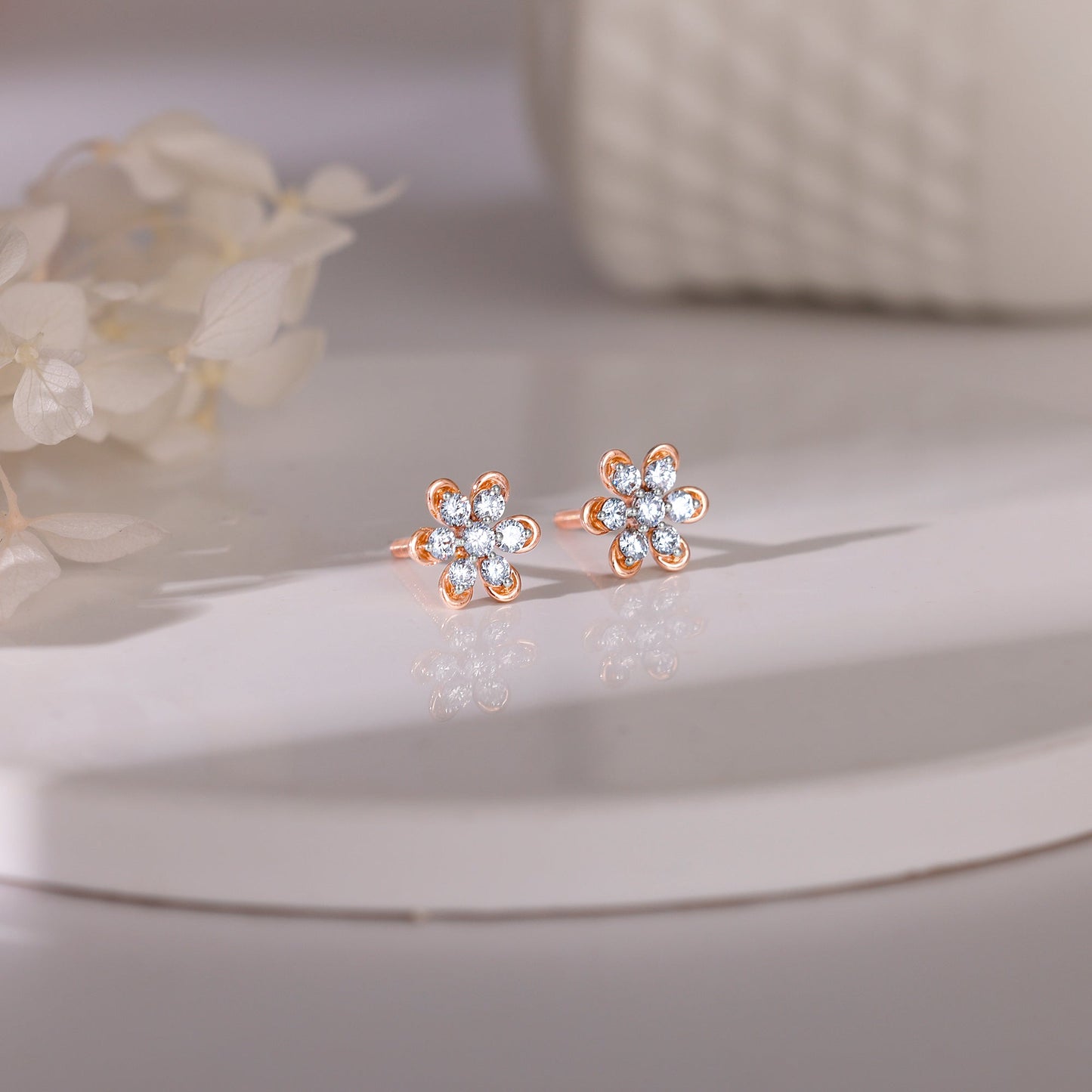 These pure gold earrings feature a beautiful floral motif studded with lab grown diamonds.