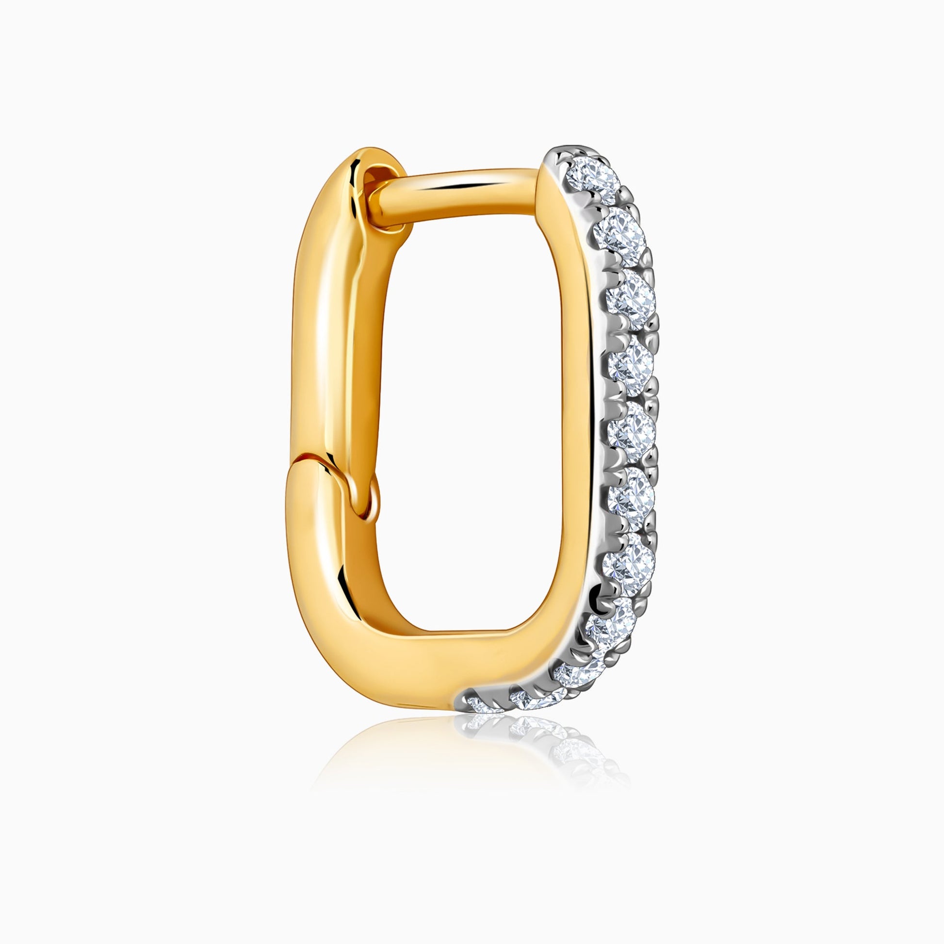 These pure gold earrings have a rectangular shape studded with lab grown diamonds.