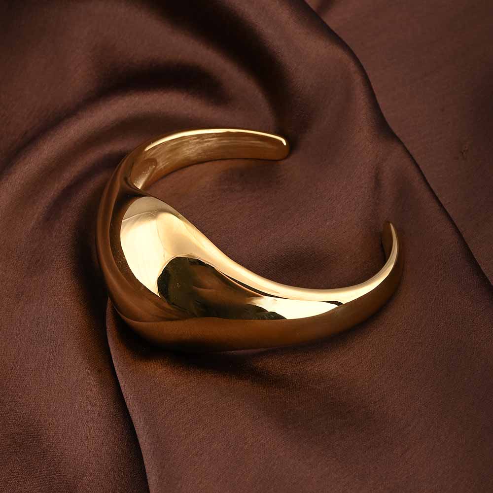 The Gold Bold Half Moon Cuff Bracelet for women is a striking statement piece crafted for modern elegance. Its sculptural half-moon silhouette, finished in radiant 18k gold tone plating, makes it both bold and timeless. Waterproof and anti-tarnish, this cuff is perfect for daily wear or occasion dressing, adding a powerful edge to any look while staying effortlessly chic and versatile in your jewellery collection.
