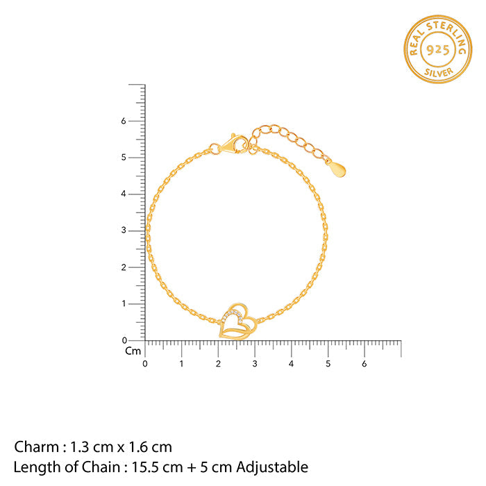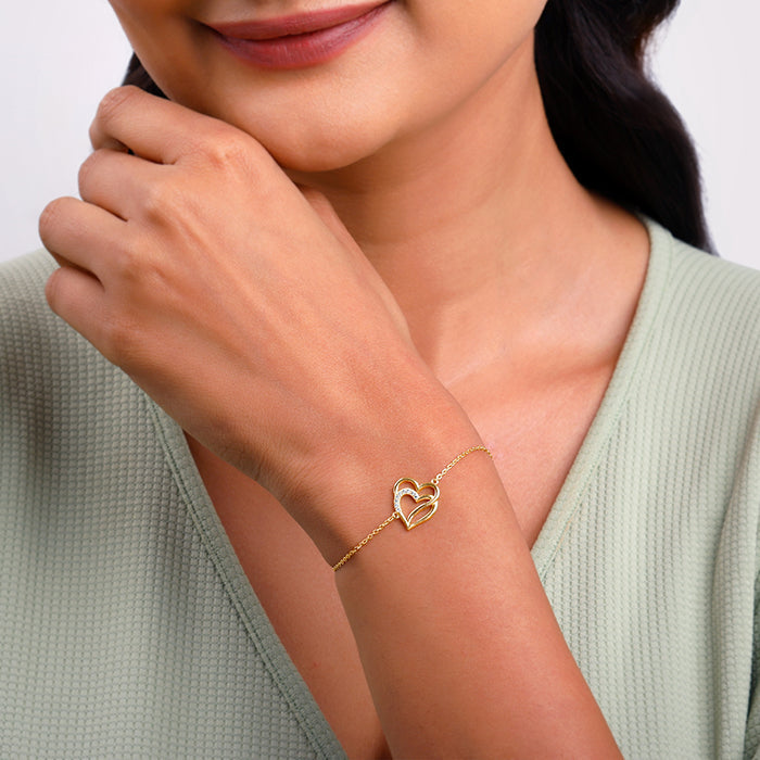 This gold plated bracelet for women features stylised interlocked hearts, partially studded with sparkling zircons.