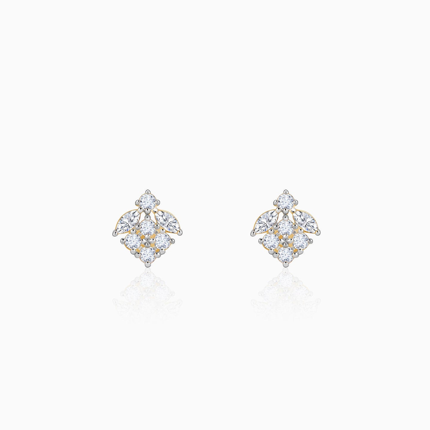 These pure gold earrings for women feature an inverted leaf or buti motif set with lab grown diamonds.