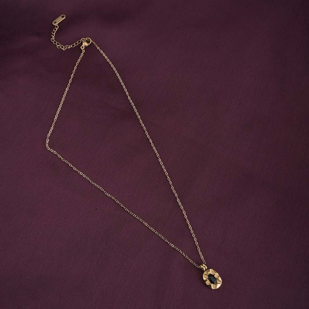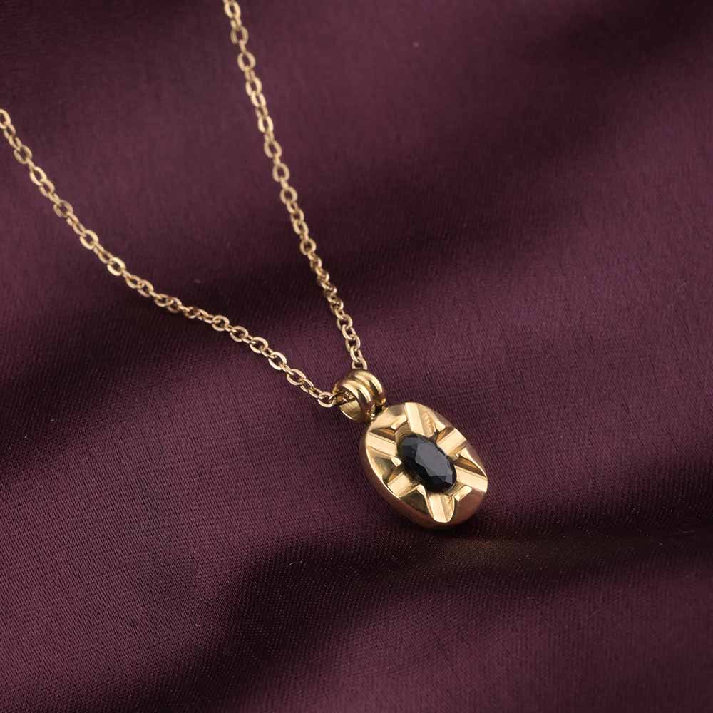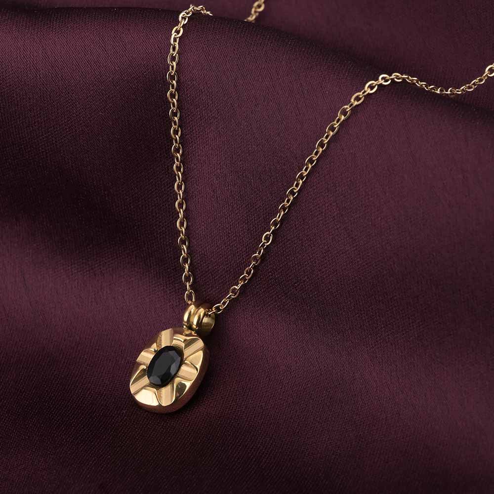 Sleek, modern, and sophisticated, the Gold Chain Necklace with Black Gemstone is crafted in stainless steel with a radiant 18k gold tone finish. Featuring a striking black cubic zirconia pendant, this necklace adds a bold yet refined statement to any outfit. Perfect for both everyday elegance and evening ensembles, it blends contemporary design with timeless appeal.