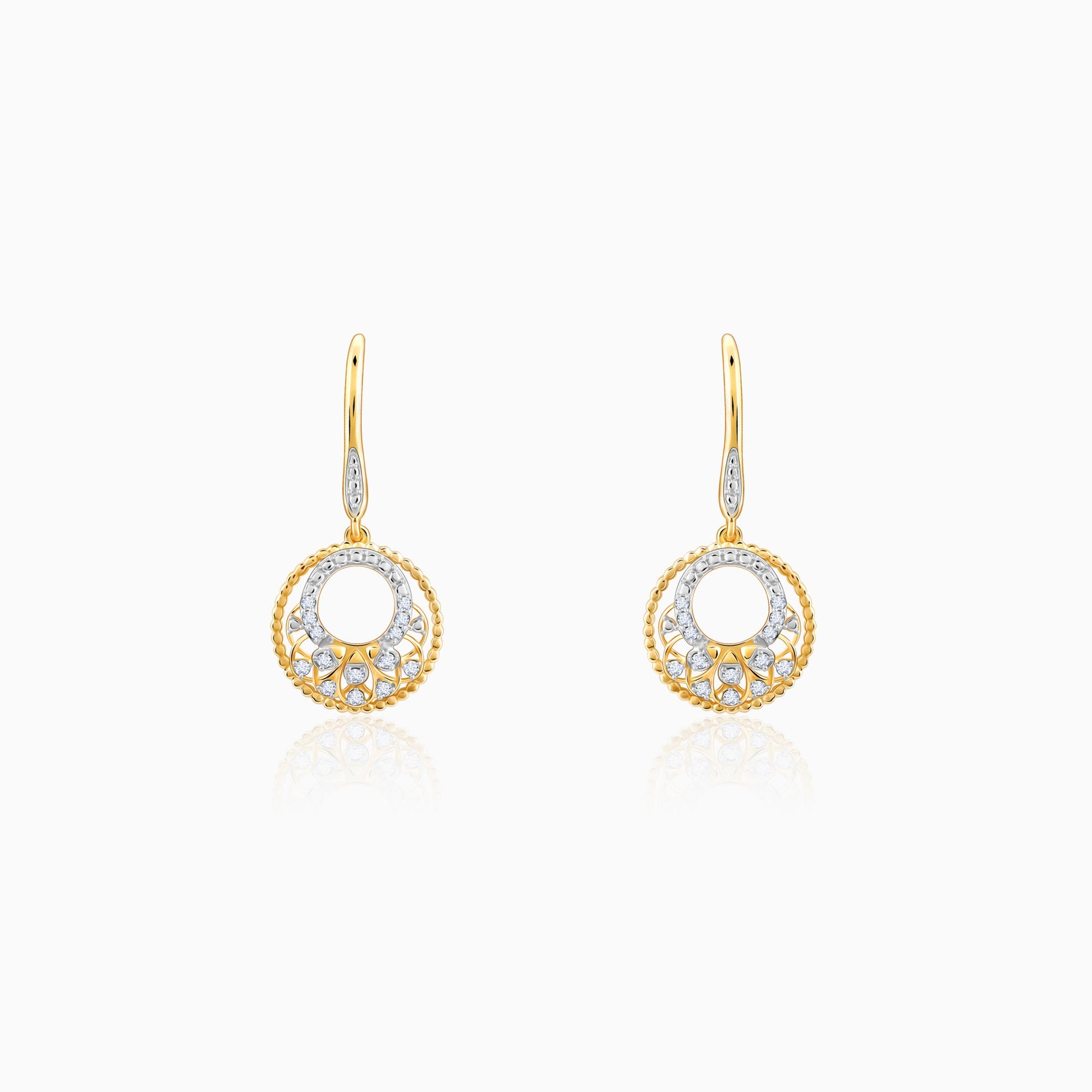 These pure gold earrings feature a dual circle motif with lab-grown diamonds.