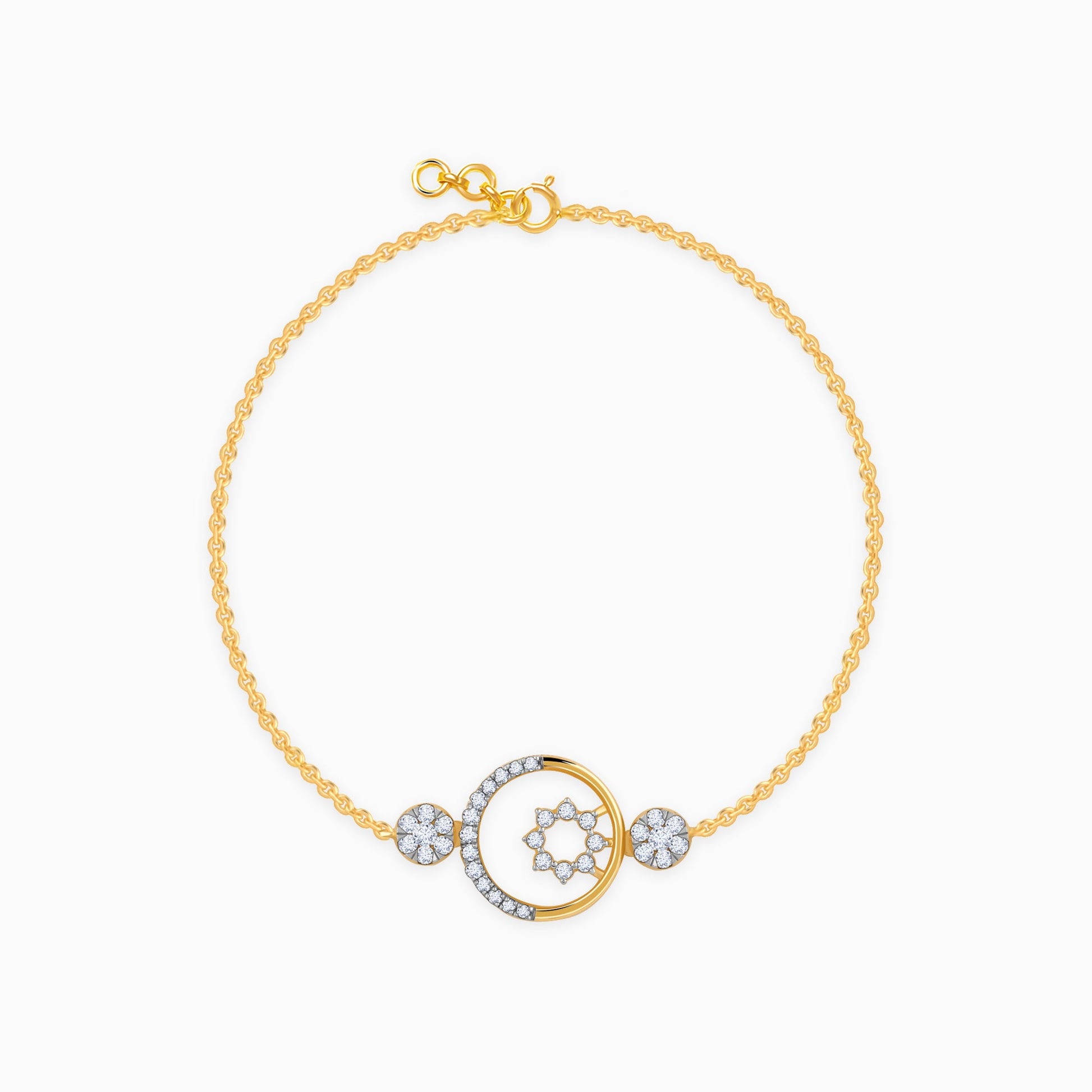 This pure gold bracelet features a triple-circle motif, adorned with lab-grown diamonds.