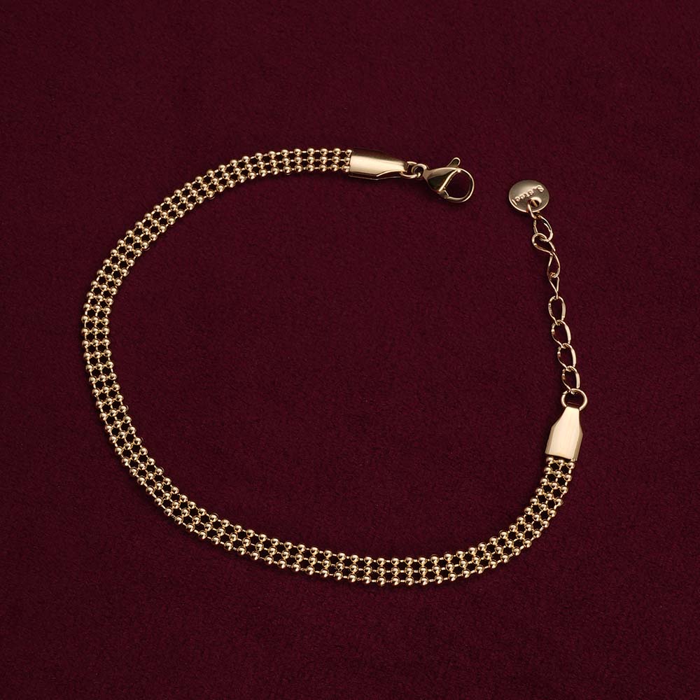 Crafted with interlinked golden chains, this bracelet reflects timeless elegance and strength. Its polished finish ensures long-lasting shine, while the adjustable clasp provides a secure fit. Lightweight and durable, it is a versatile accessory that brings sophistication to both casual and formal occasions.