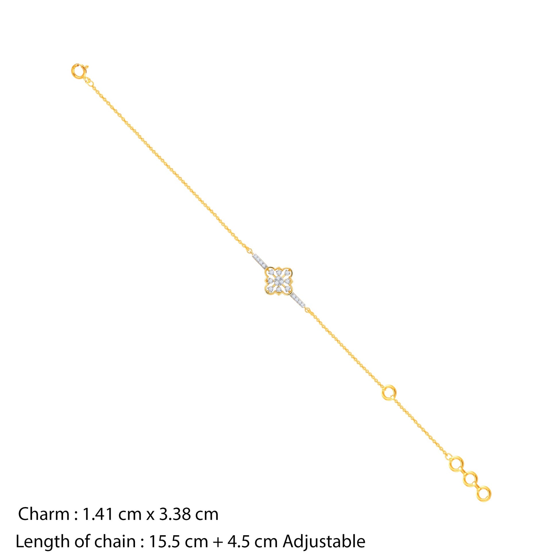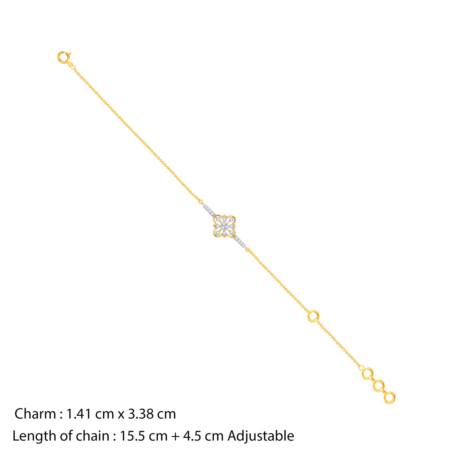 This pure gold bracelet features a quatrefoil shape studded with lab grown diamonds. Additional