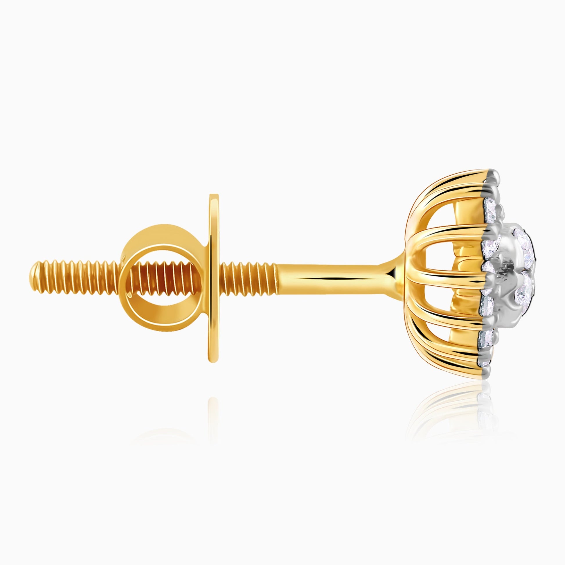 These pure gold earrings feature a stunning floral motif studded with lab grown diamonds.