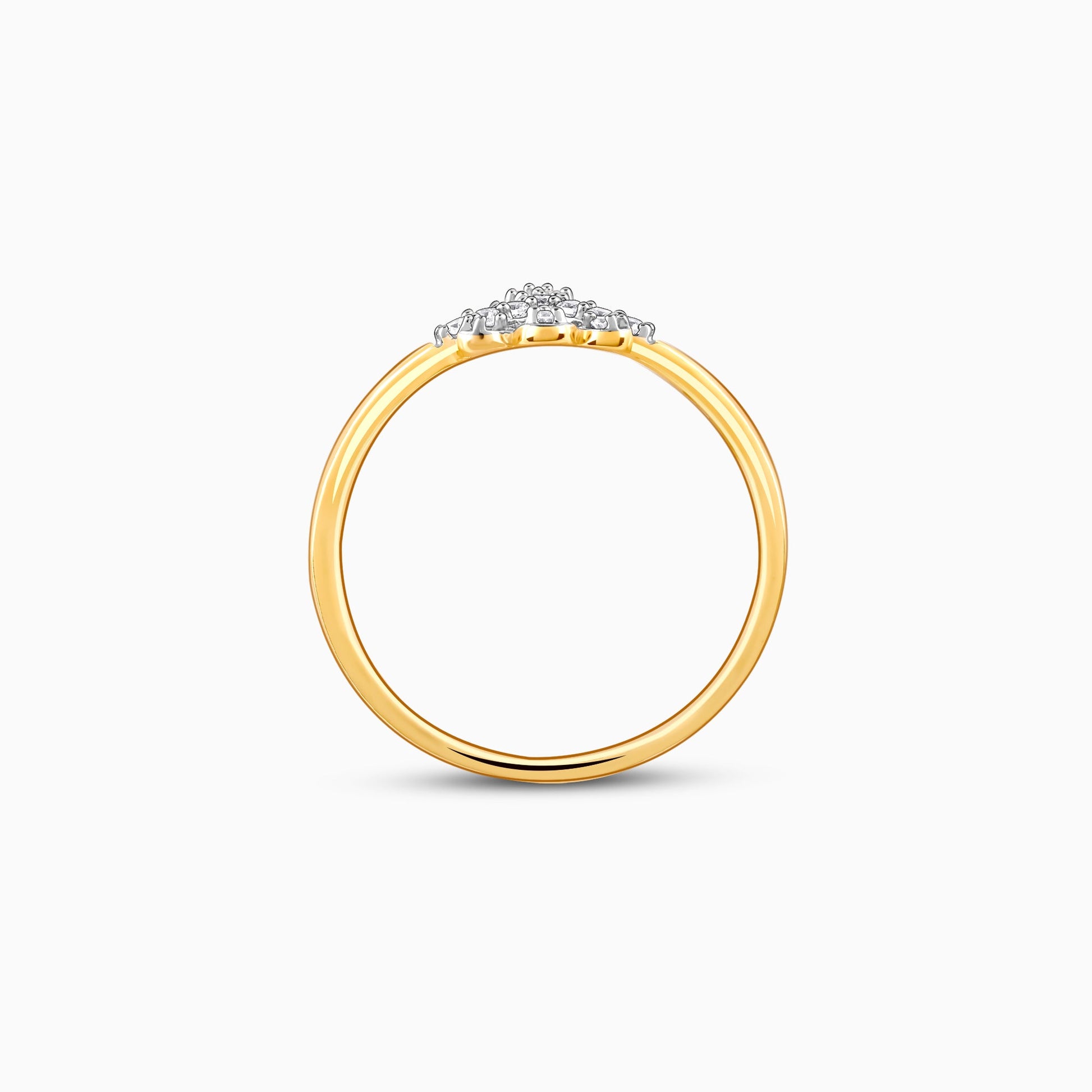 This gold ring features a vanki design nestling lab-grown diamonds at its vertex attached to a dangler.