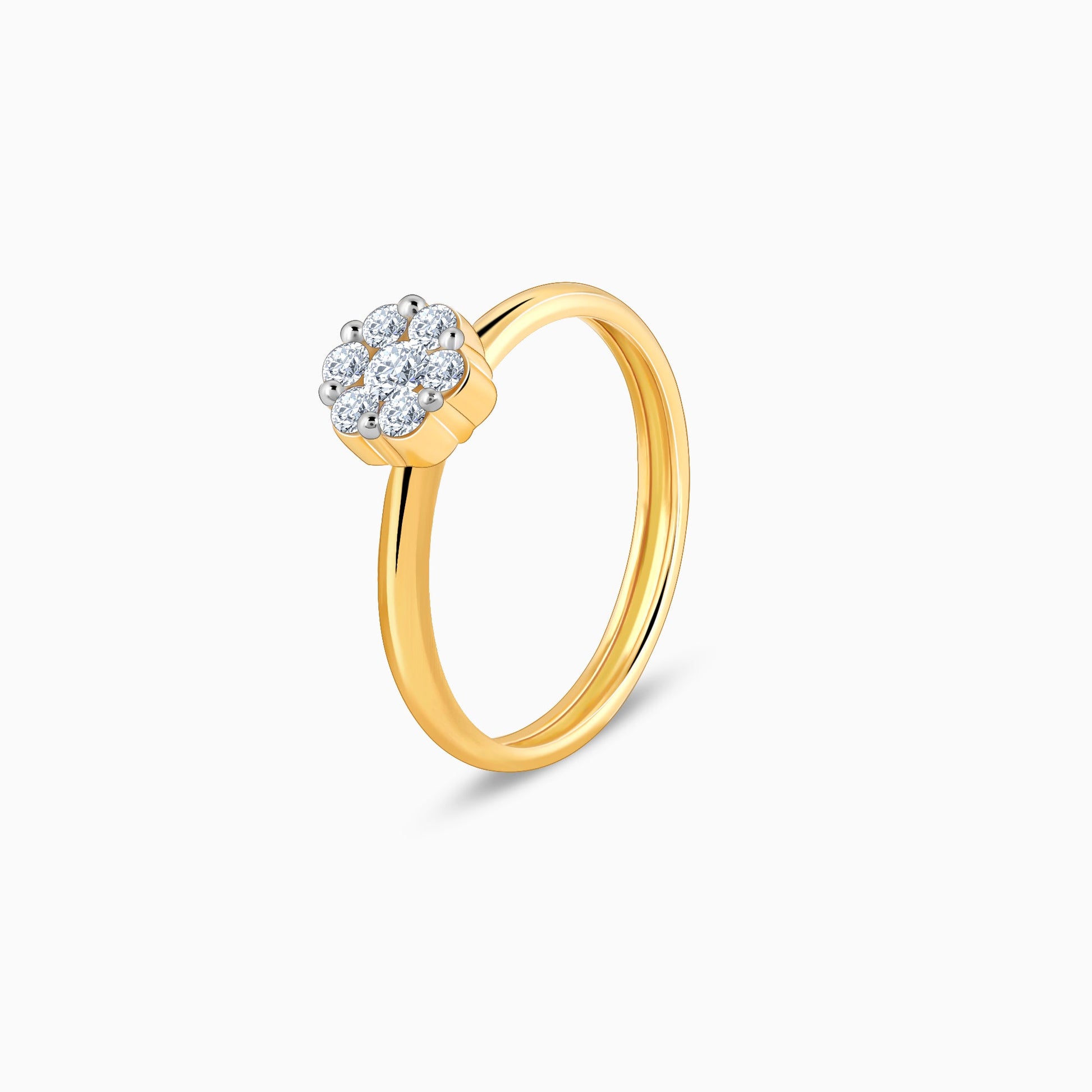 This gold ring features a classic band, with a floral head studded with lab-grown diamonds.
