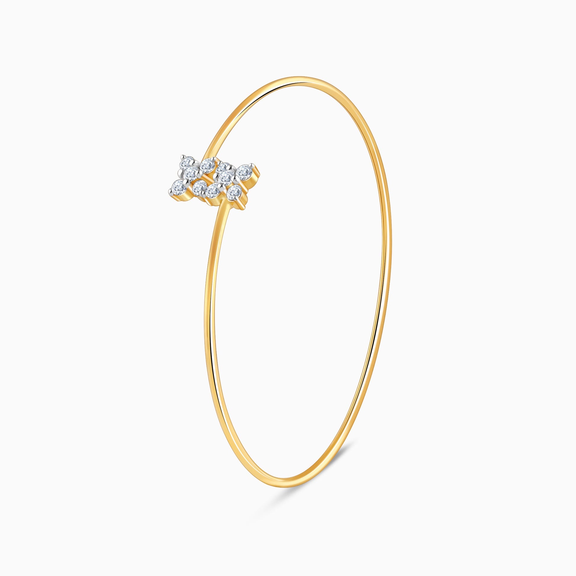 This bangle bracelet for women features a gold band with a sparkling twin-floral paved with lab grown diamonds.
