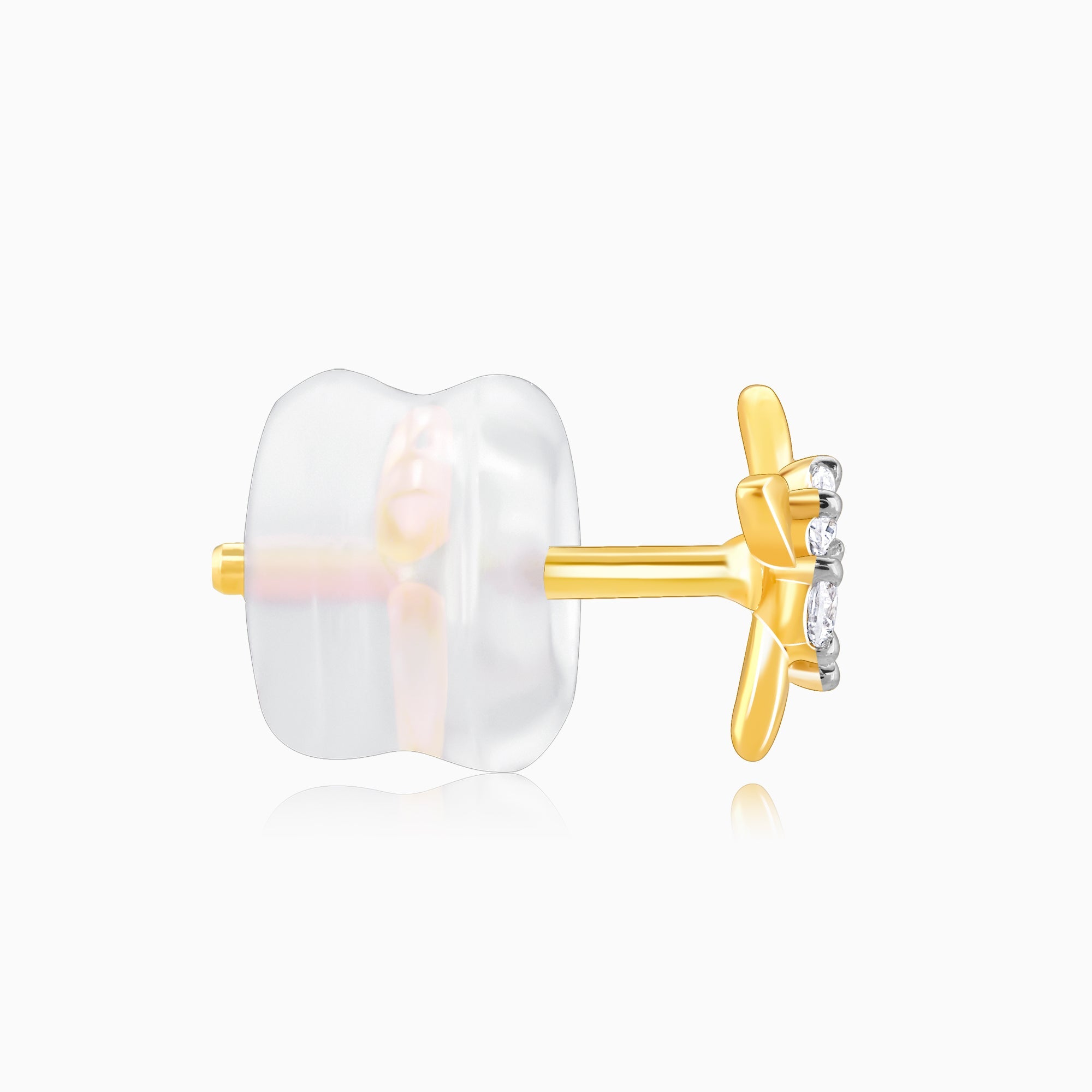 These gold stud earrings have a flower motif studded with lab-grown diamonds.