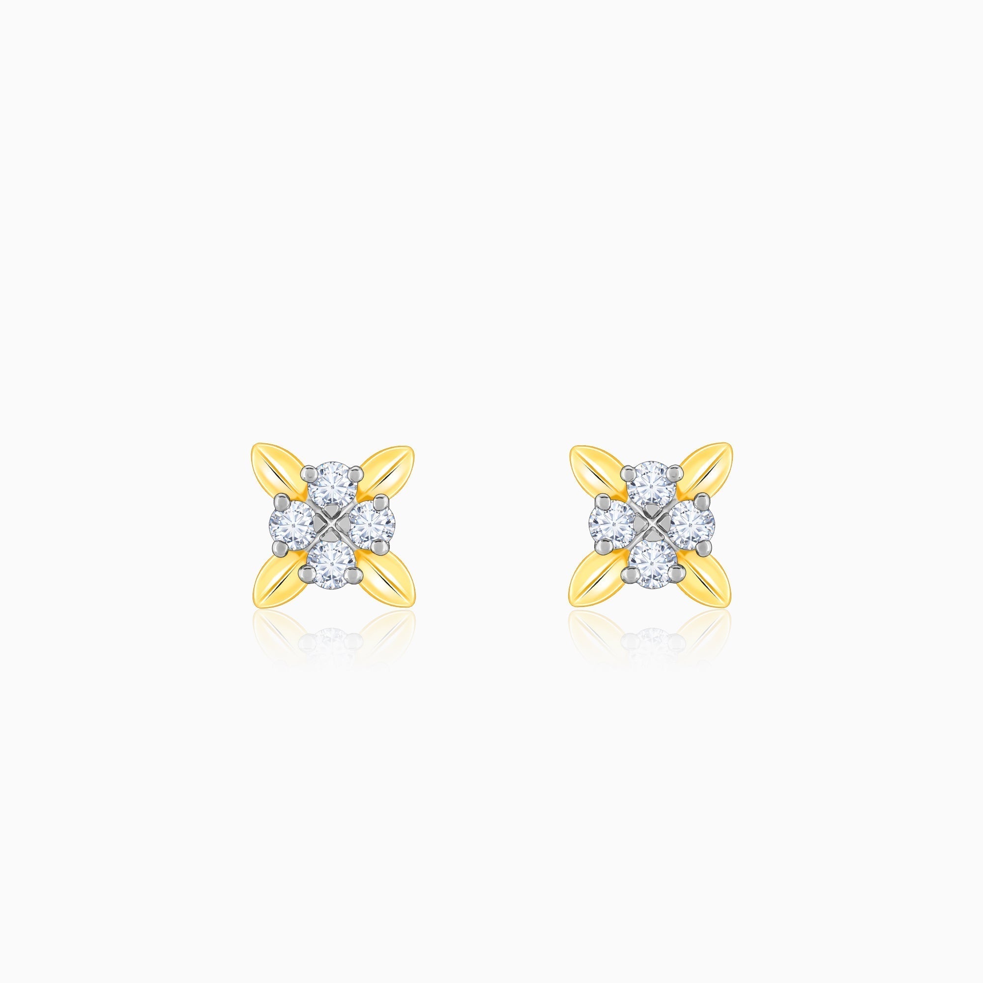 Gold Floral Beauty Diamond Stud Earrings