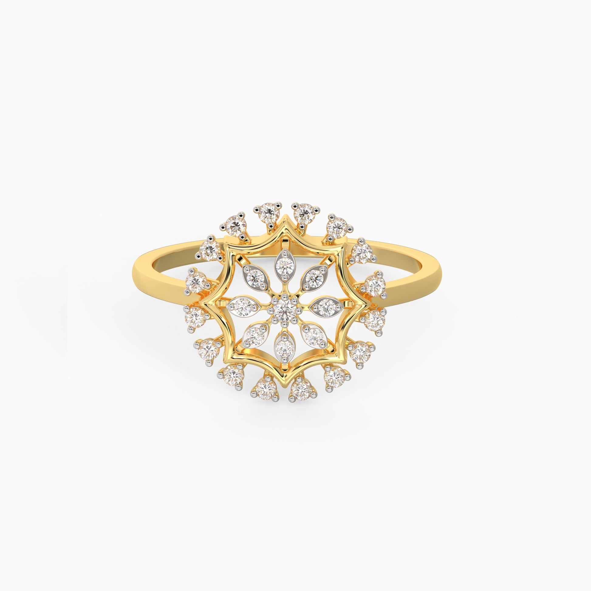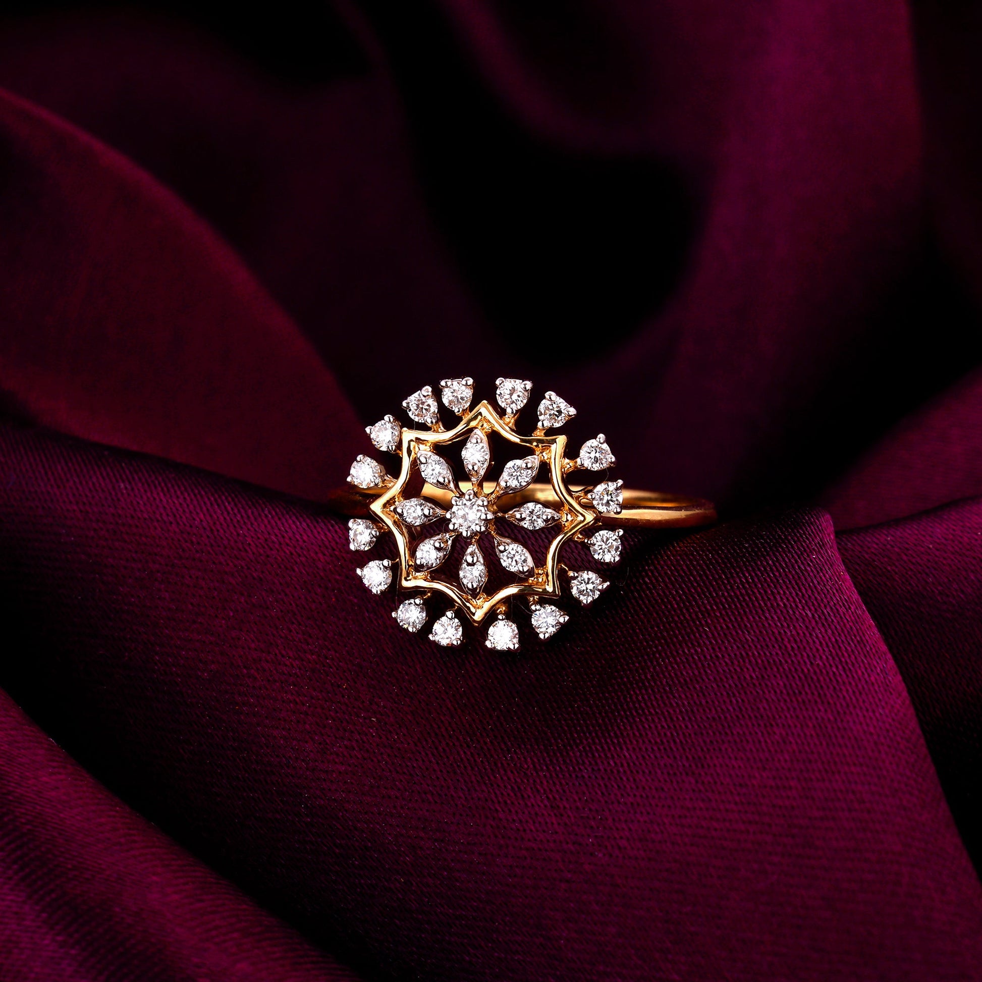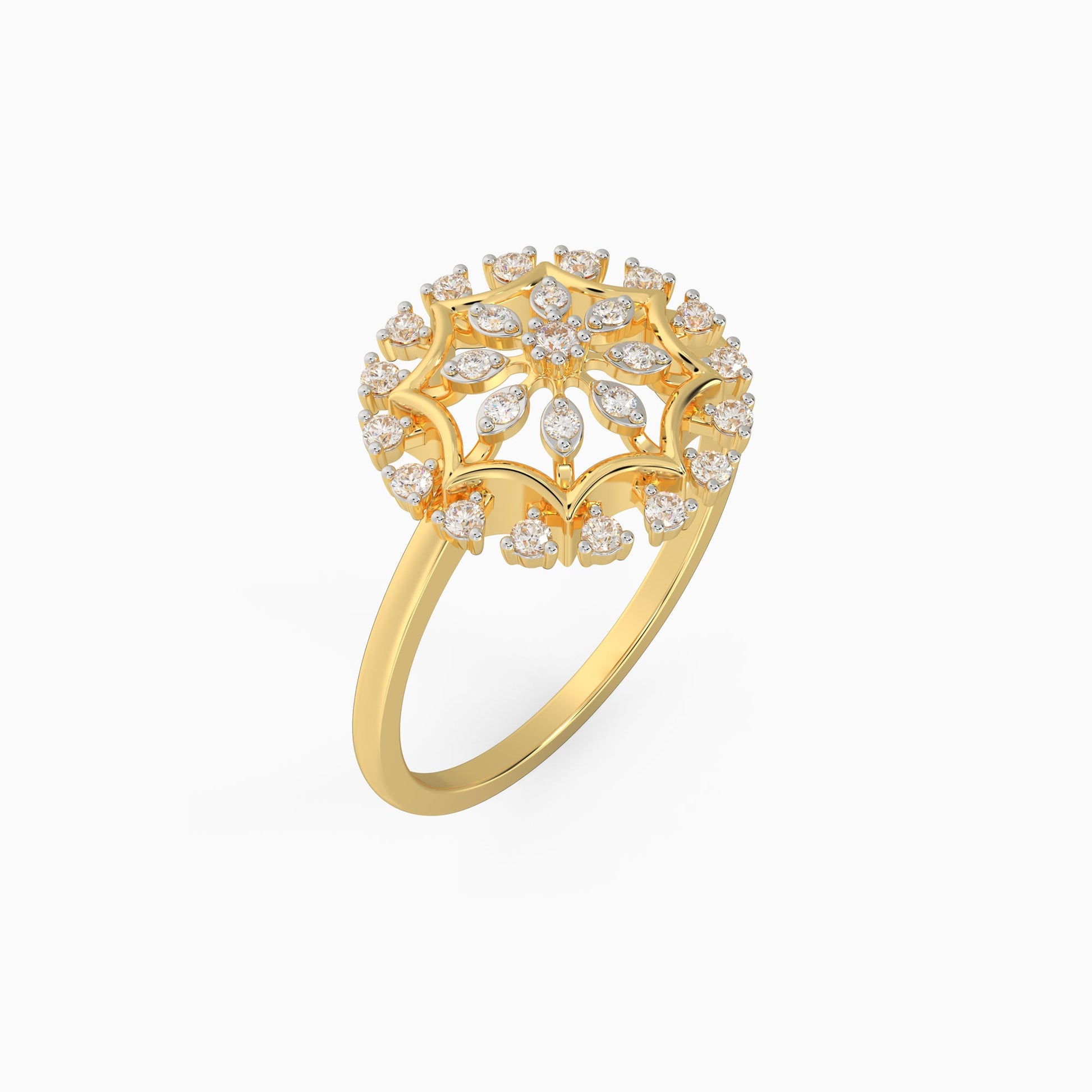 Gold Glamorous Floral Diamond Ring is inspired by glistening diamonds that shimmer like teardrops of pure delight, eternally celebrating moments that touch the heart.