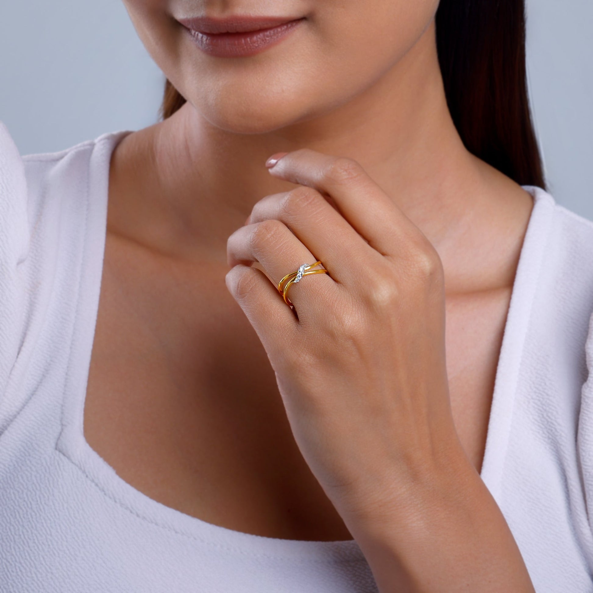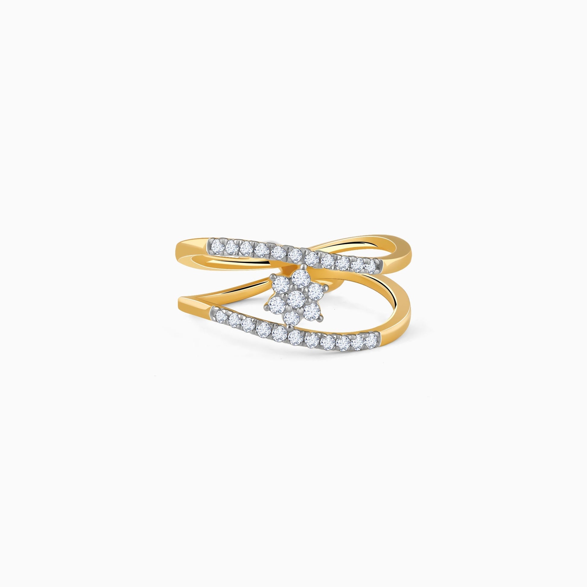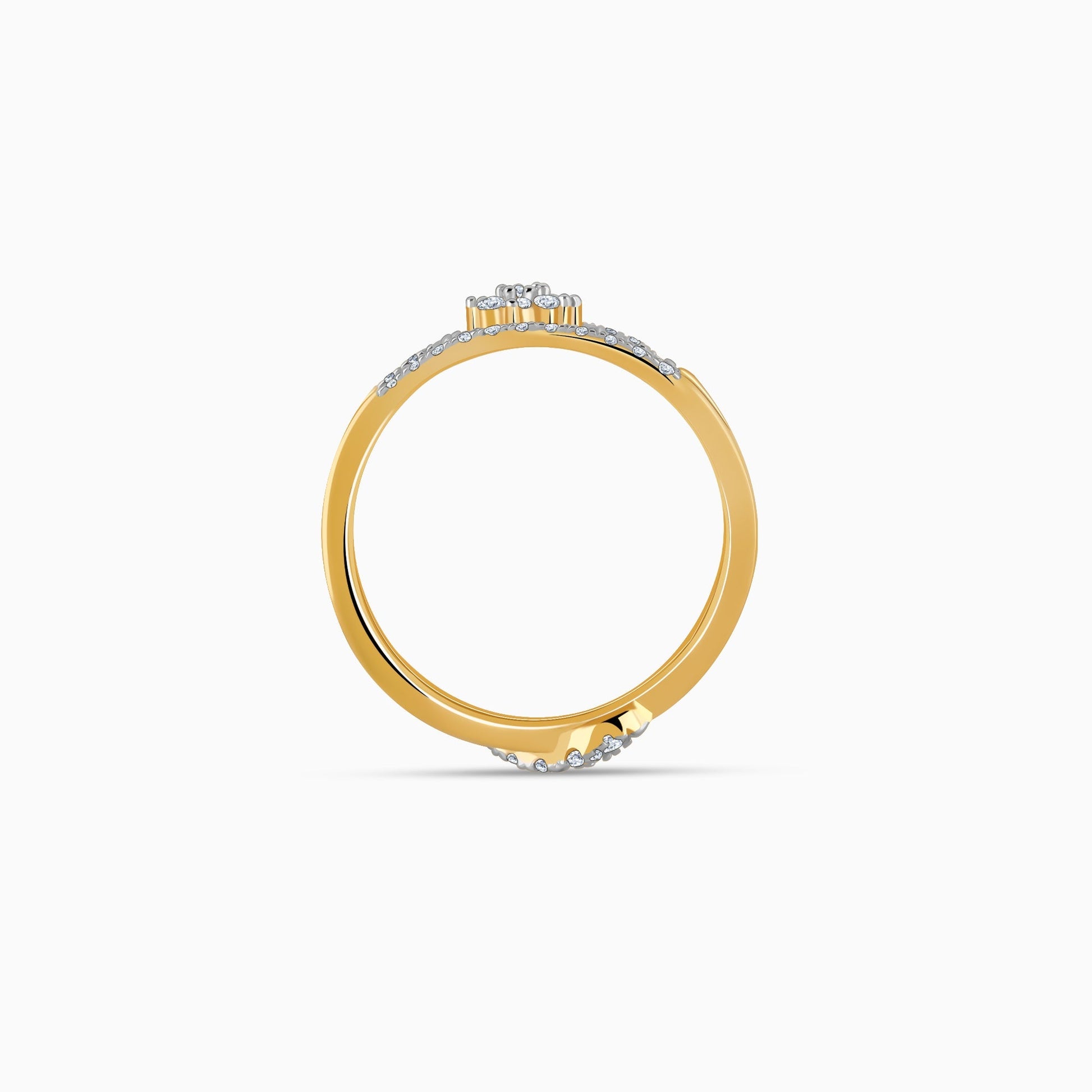 This pure gold ring showcases a stunning dual-layer wavy design with a star motif at the centre, studded with lab-grown diamonds.