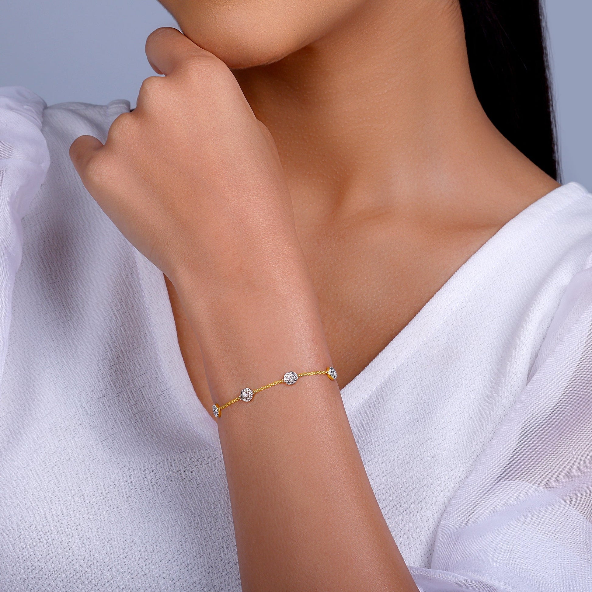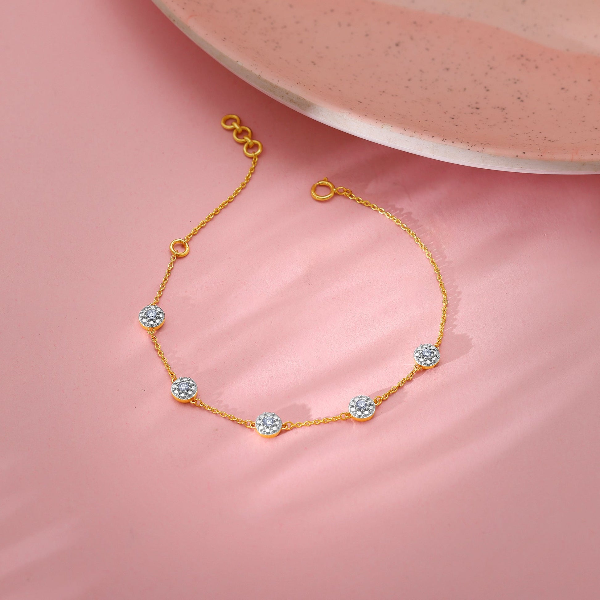 This pure gold bracelet has a circular motif set with lab grown diamonds.