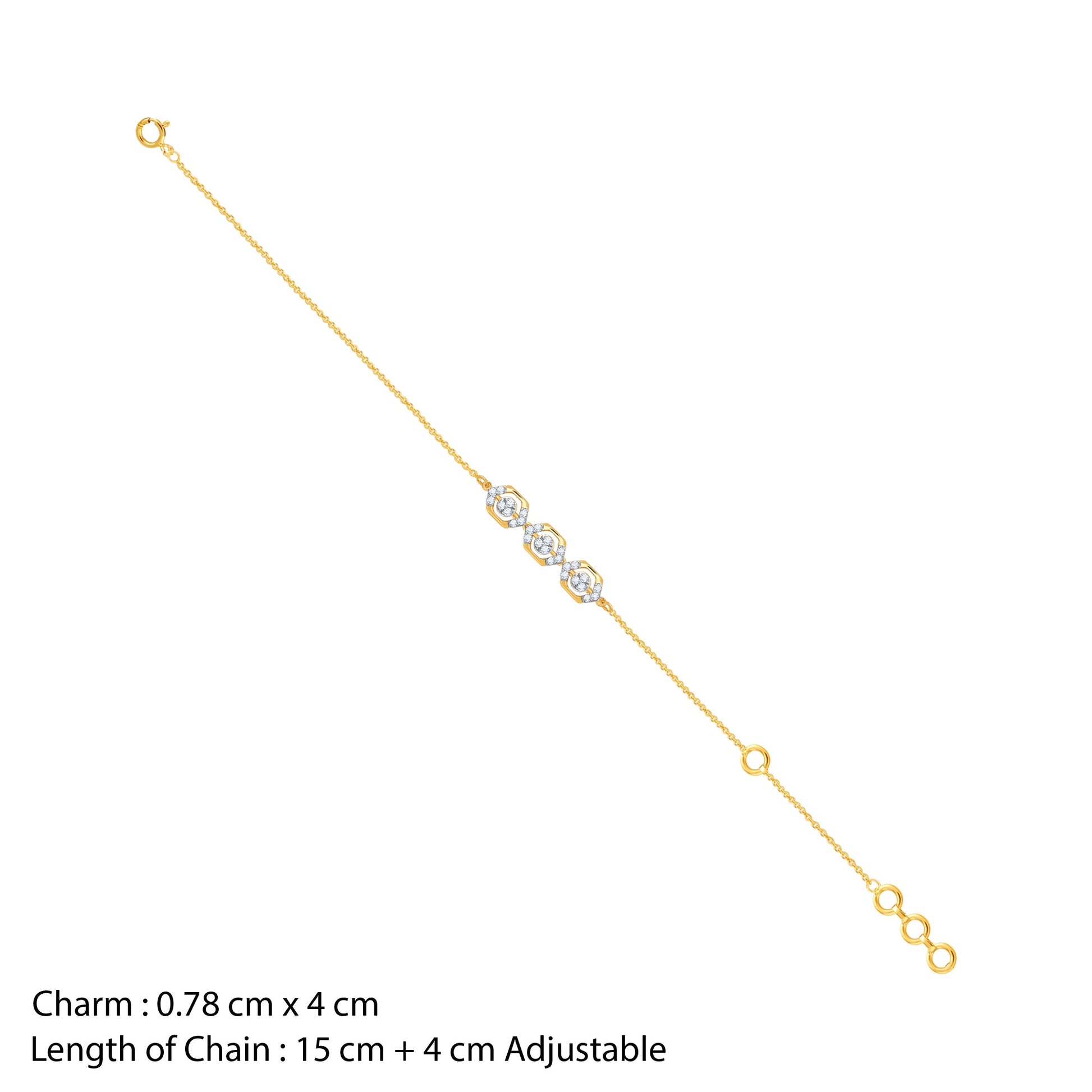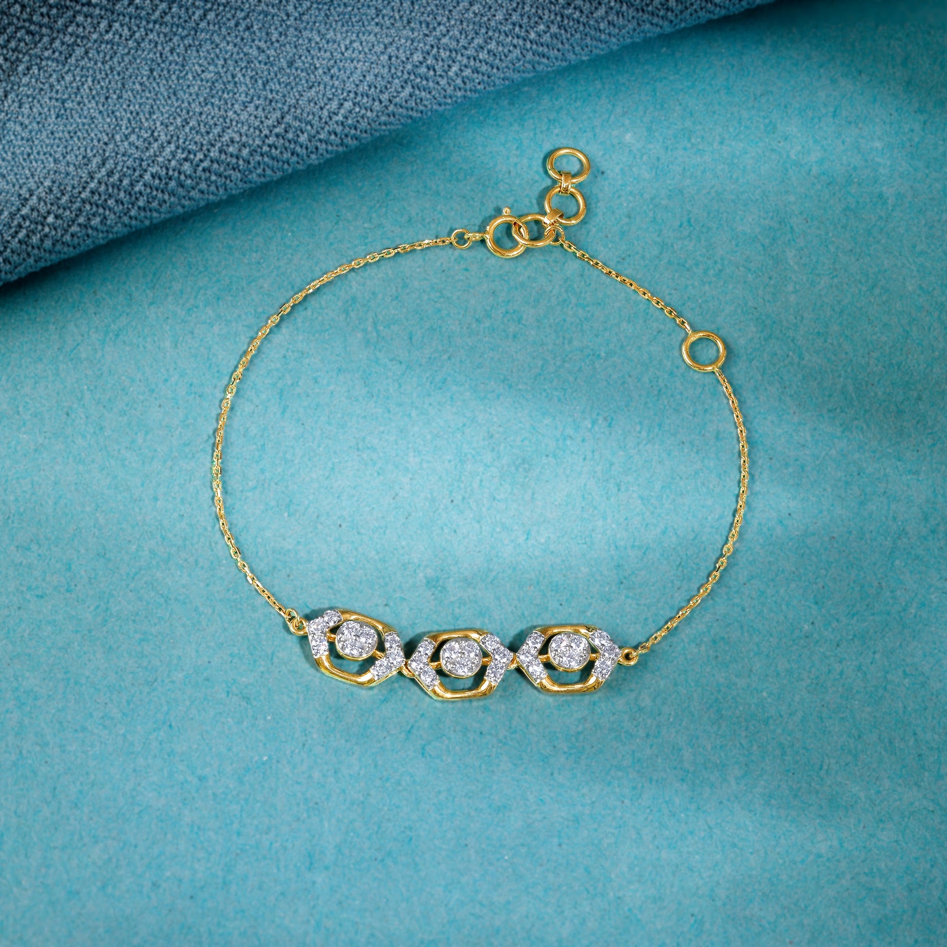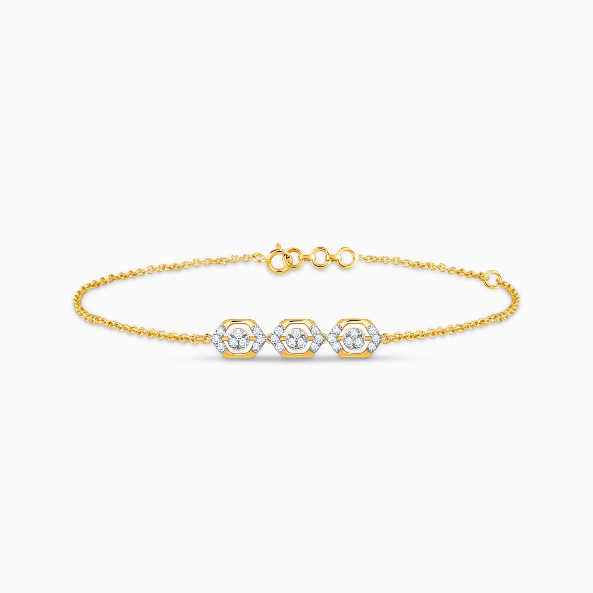 This pure gold bracelet features triple hexagon motifs. The motifs are partially studded with lab grown diamonds.